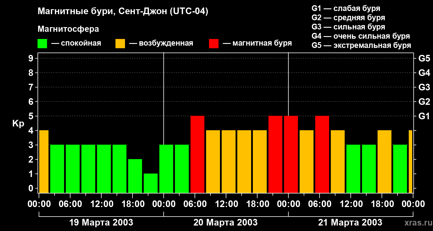 Магнитные бури в Сент-Джоне — 21 марта 2003 года