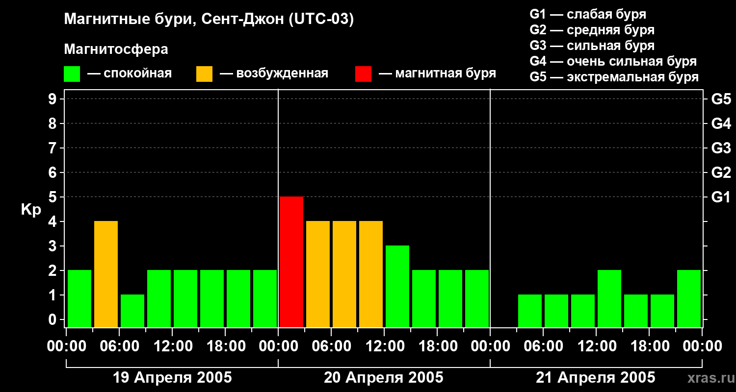 Магнитные бури в Сент-Джоне — 21 апреля 2005 года
