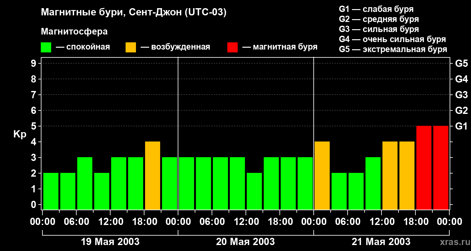 Магнитные бури в Сент-Джоне — 21 мая 2003 года