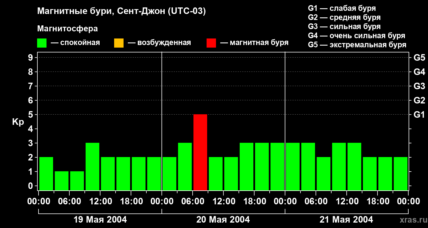 Магнитные бури в Сент-Джоне — 21 мая 2004 года