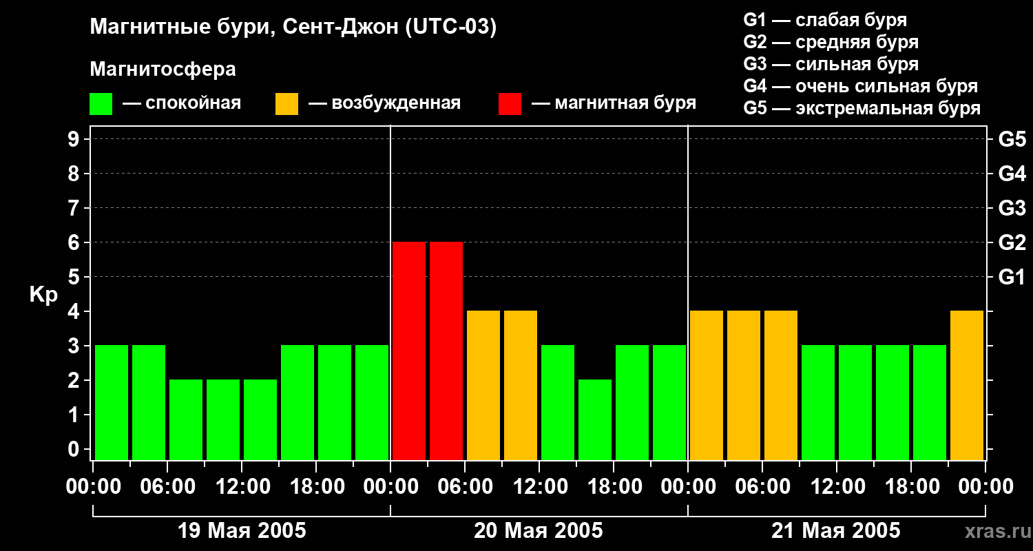 Магнитные бури в Сент-Джоне — 21 мая 2005 года