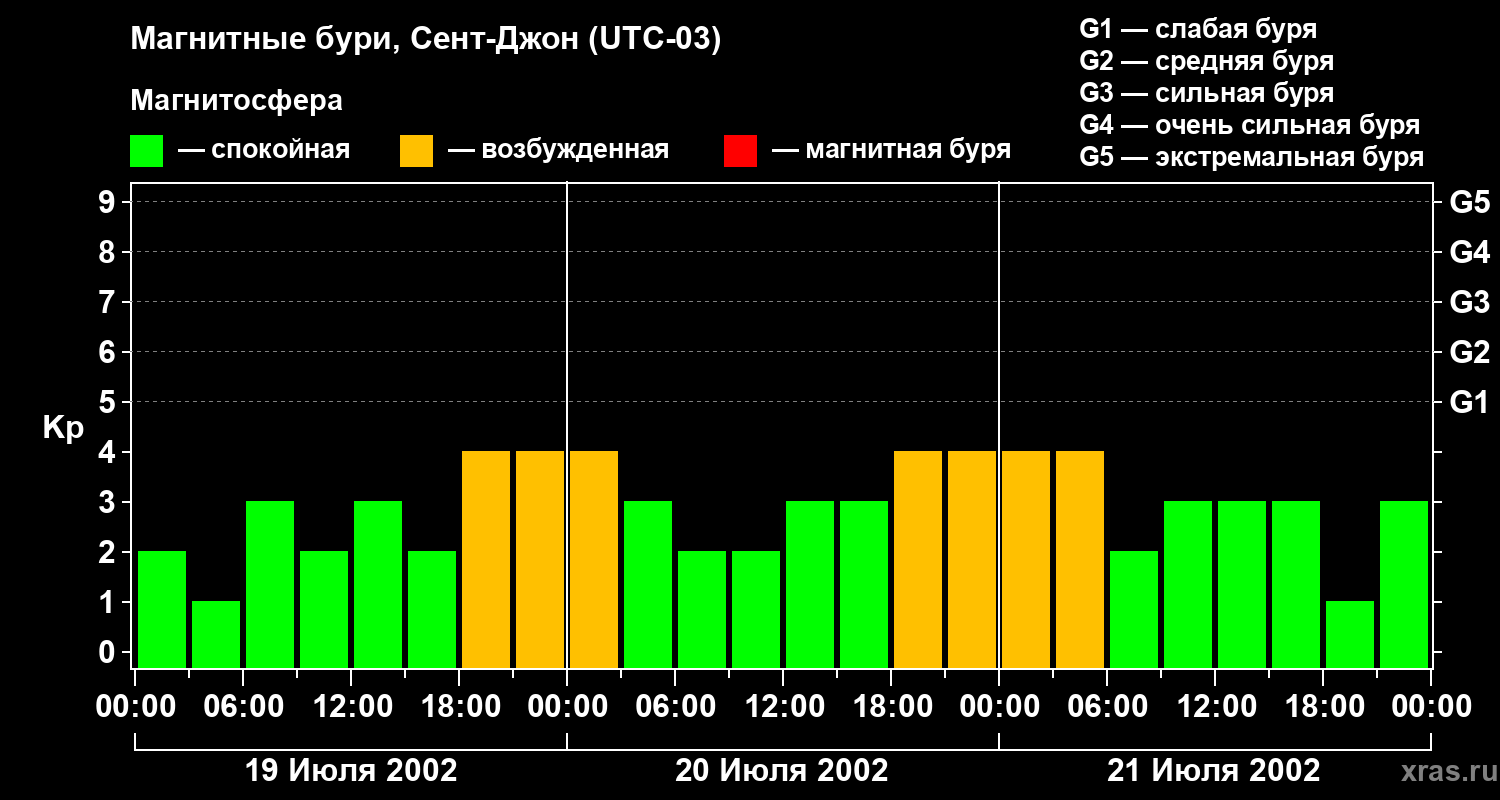 Магнитные бури в Сент-Джоне 21 июля 2002 года