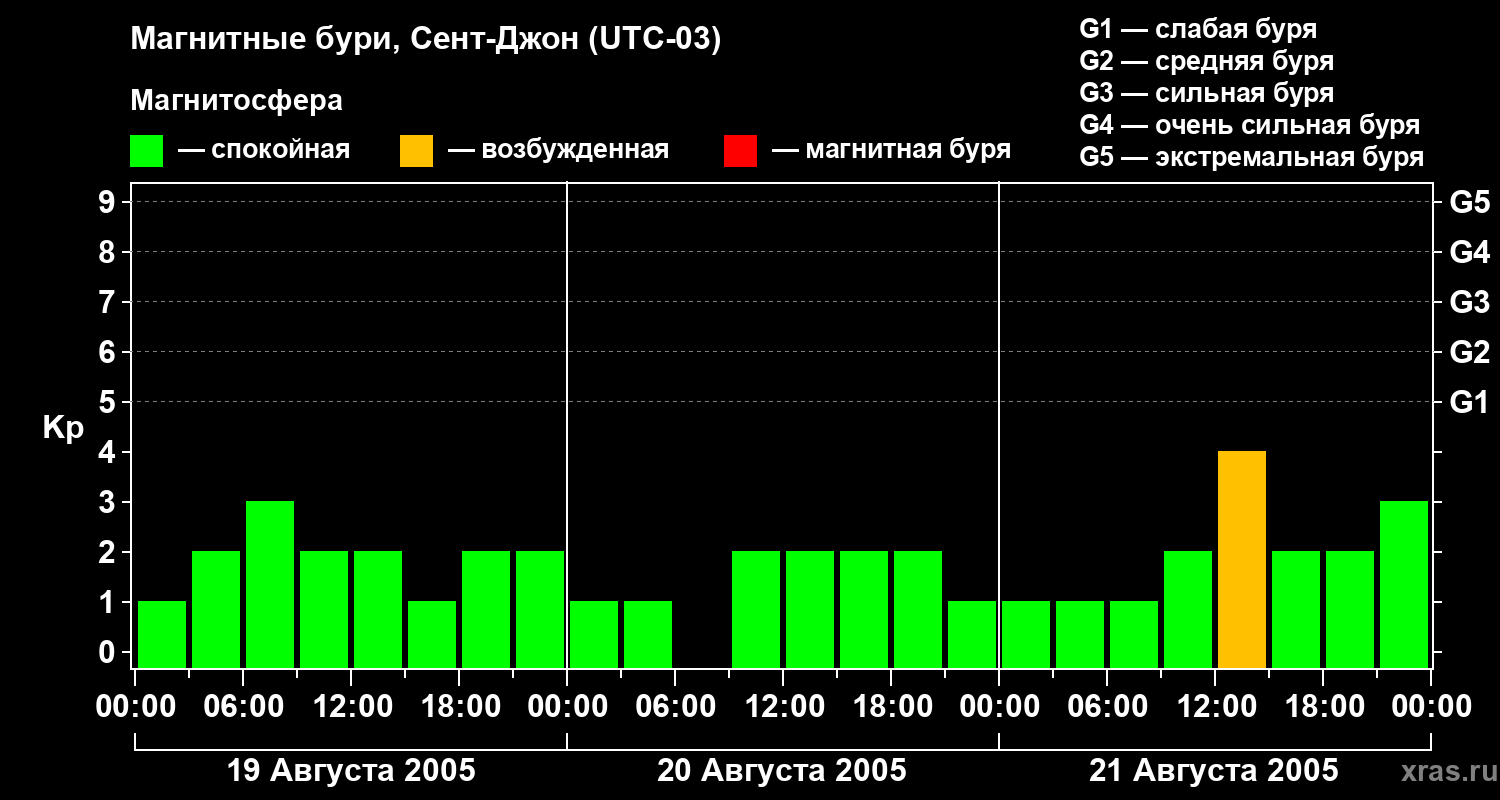 Магнитные бури в Сент-Джоне 21 августа 2005 года