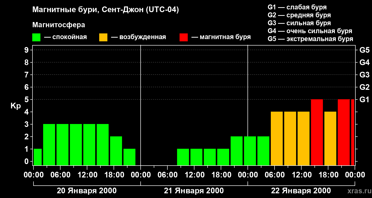 Магнитные бури в Сент-Джоне — 22 января 2000 года
