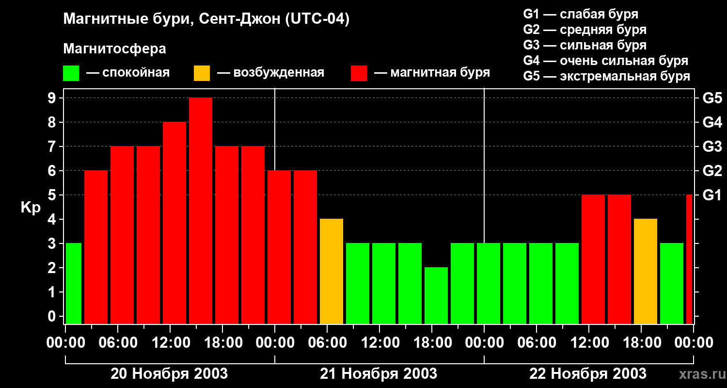 Магнитные бури в Сент-Джоне — 22 ноября 2003 года