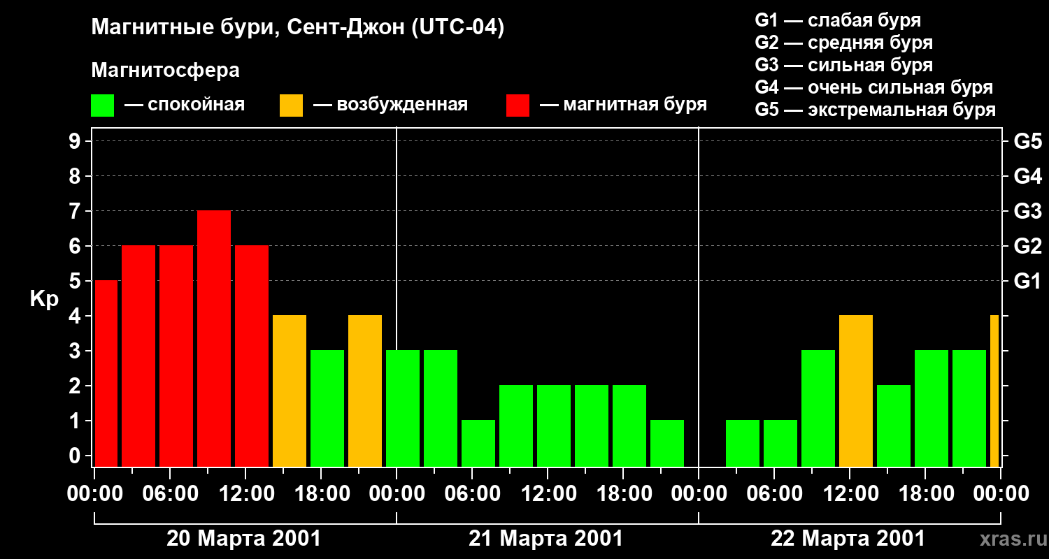 Магнитные бури в Сент-Джоне — 22 марта 2001 года