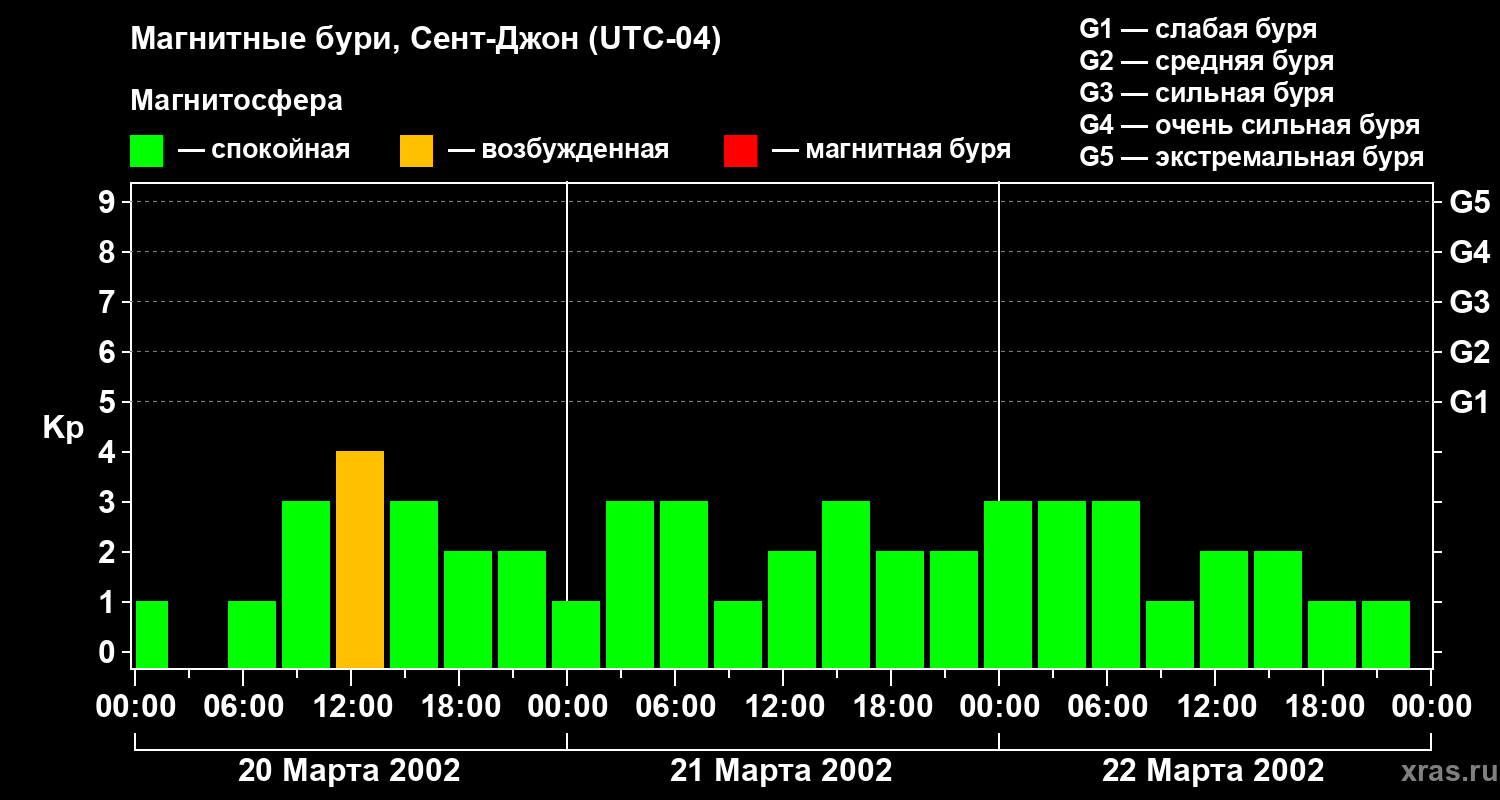 Магнитные бури в Сент-Джоне — 22 марта 2002 года