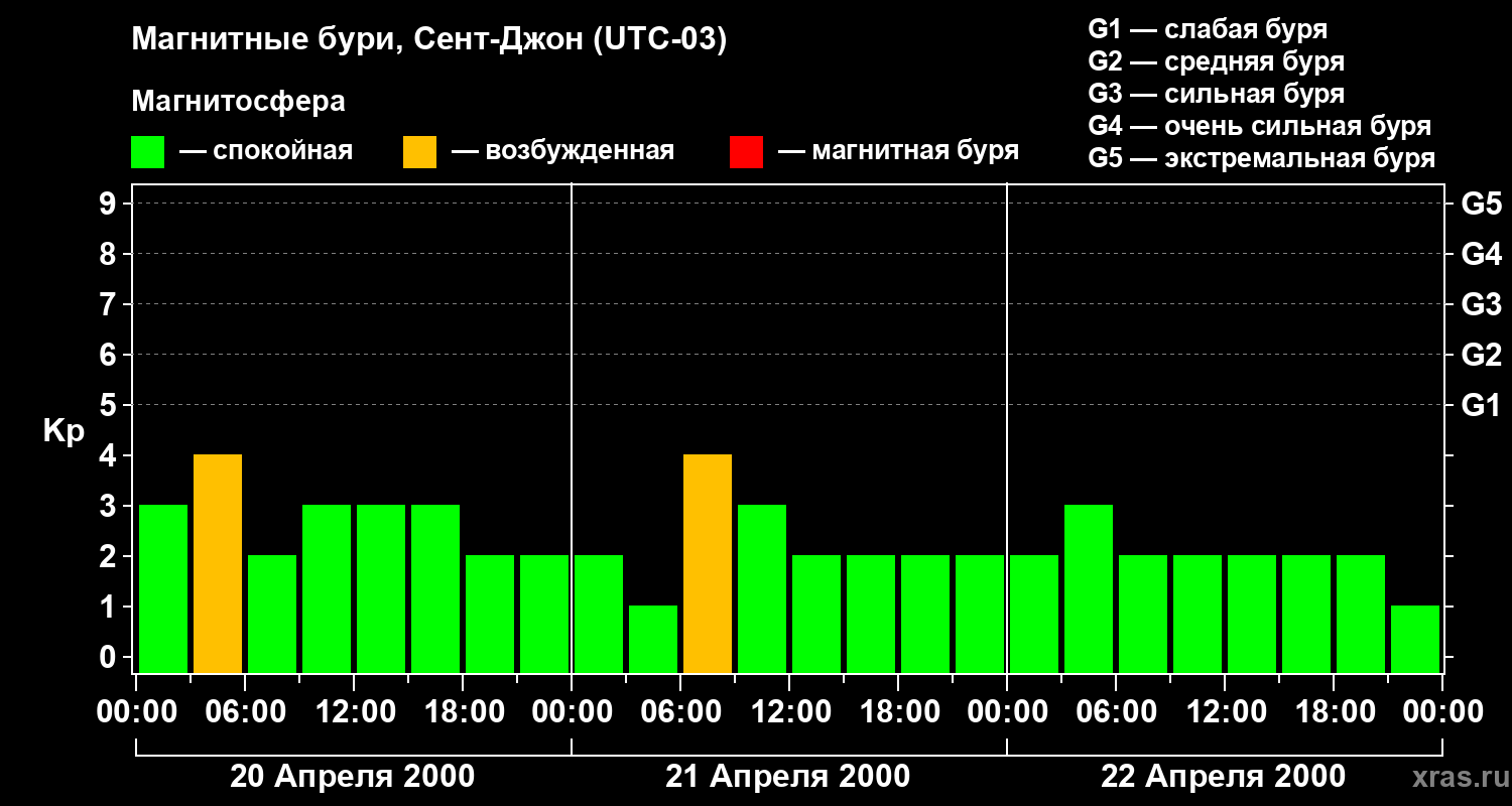 Магнитные бури в Сент-Джоне — 22 апреля 2000 года