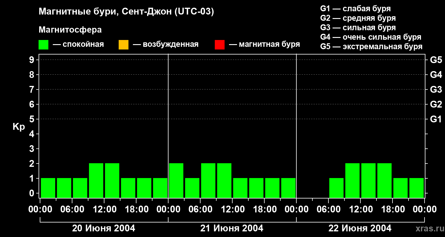 Магнитные бури в Сент-Джоне 22 июня 2004 года