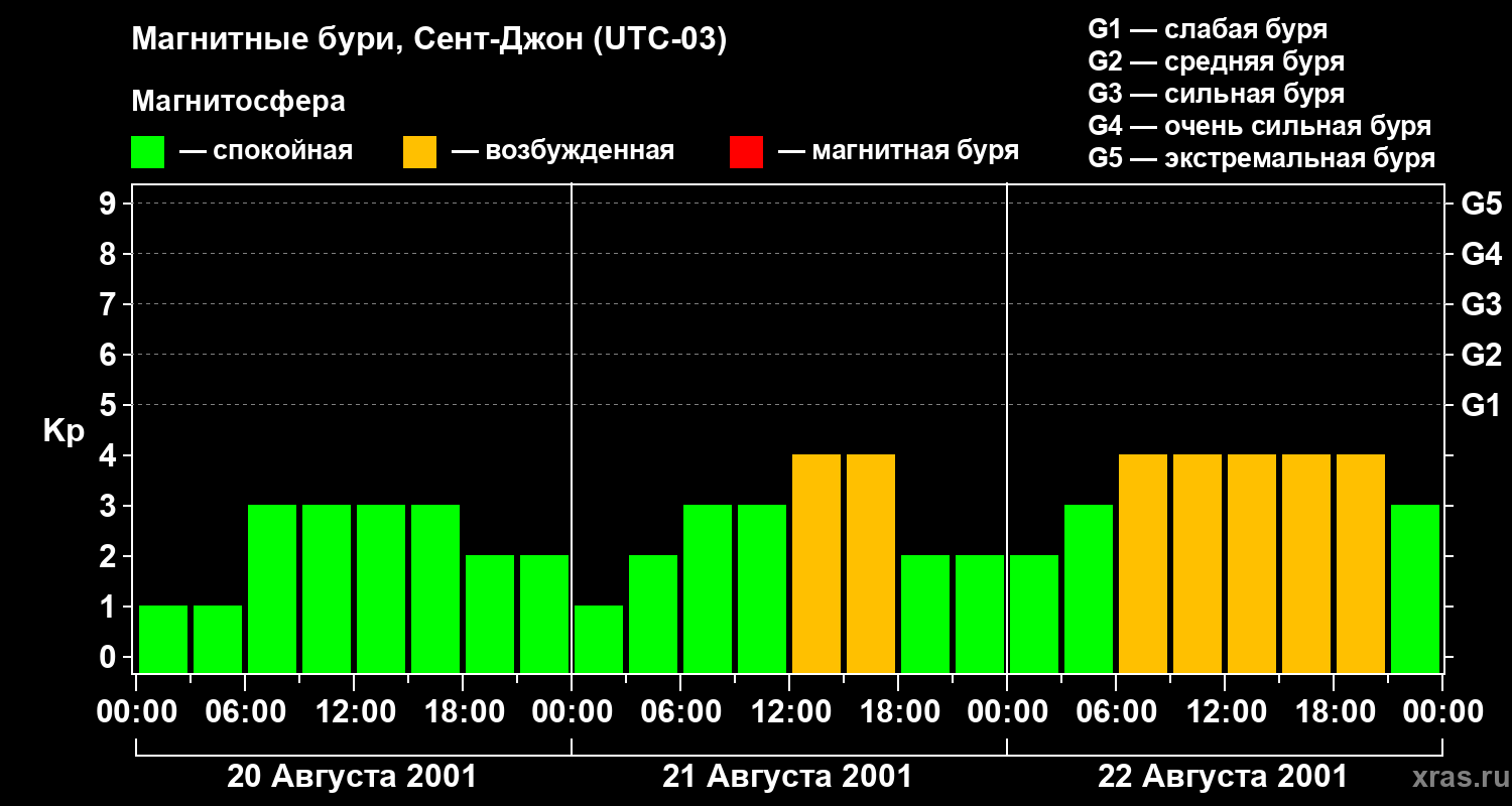 Магнитные бури в Сент-Джоне 22 августа 2001 года
