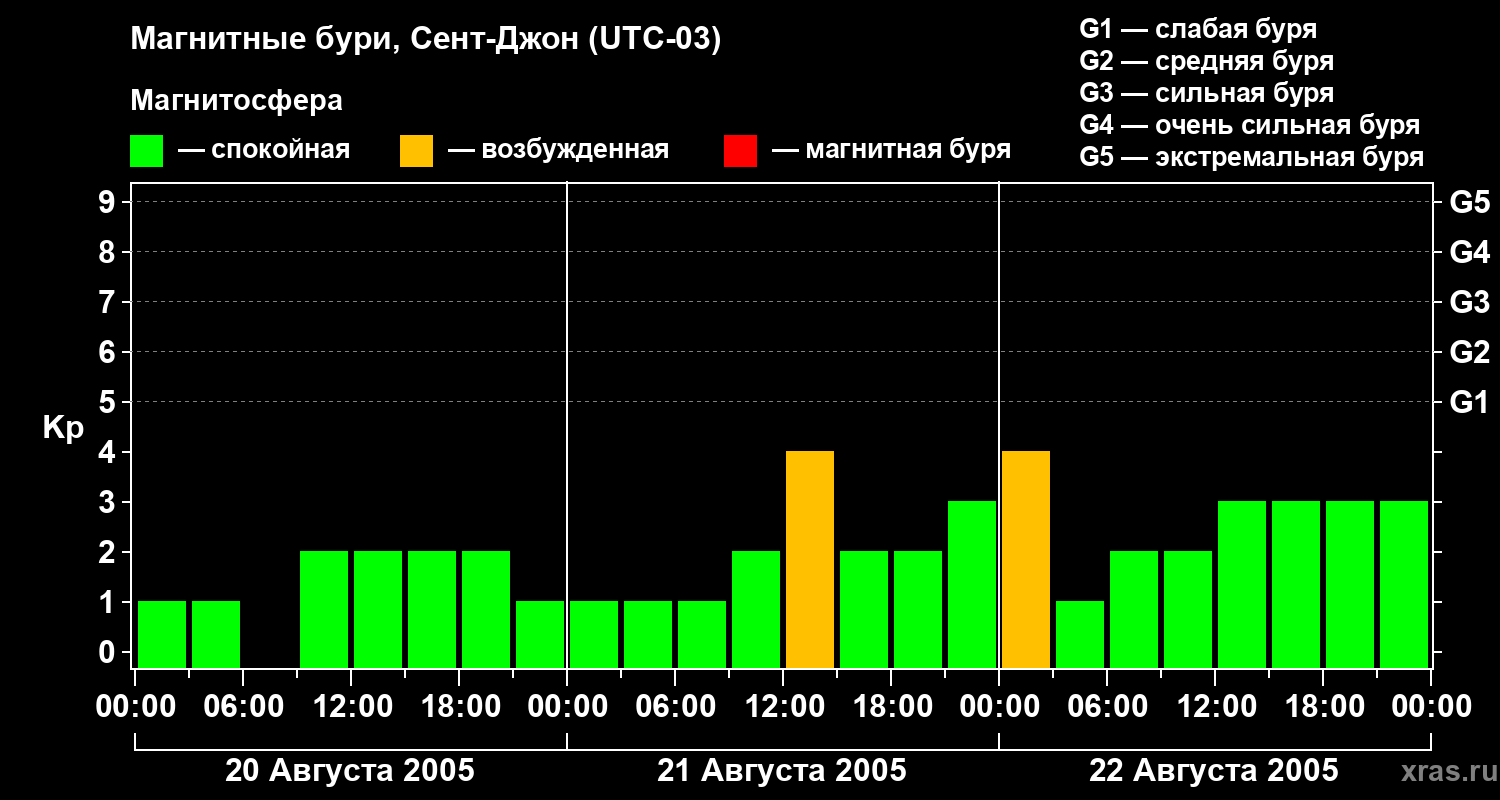Магнитные бури в Сент-Джоне — 22 августа 2005 года