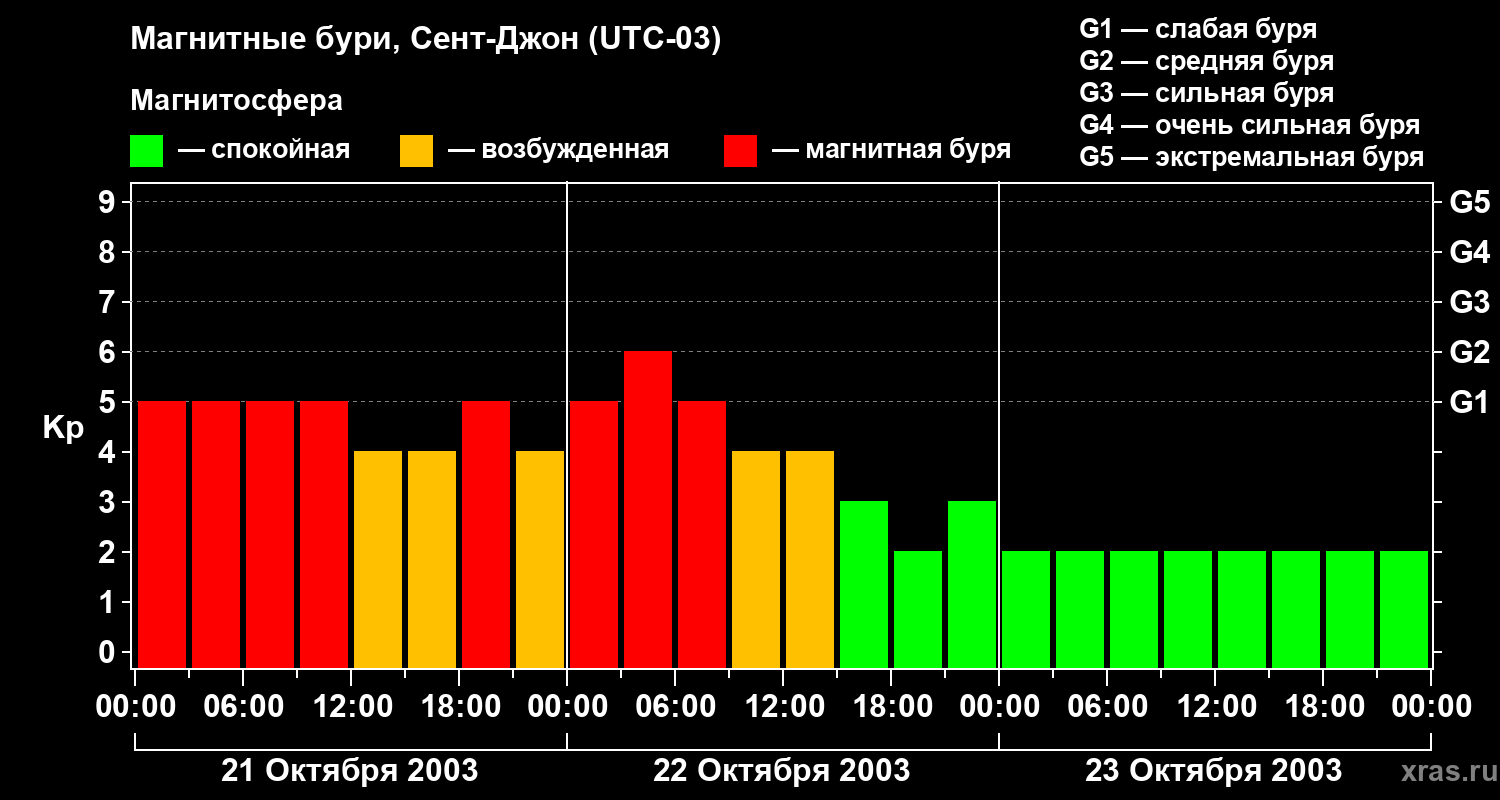 Магнитные бури в Сент-Джоне — 23 октября 2003 года