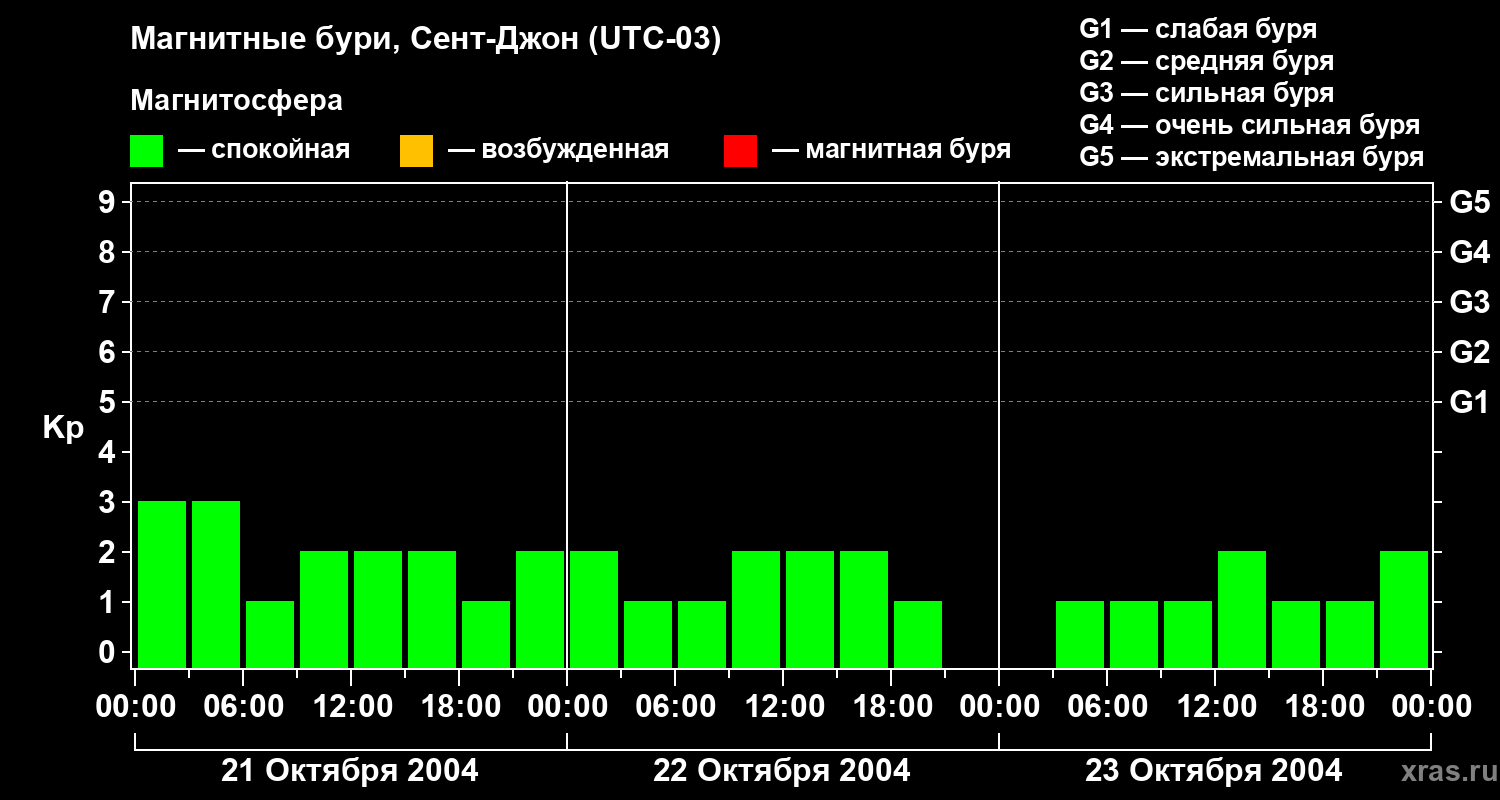 Магнитные бури в Сент-Джоне 23 октября 2004 года
