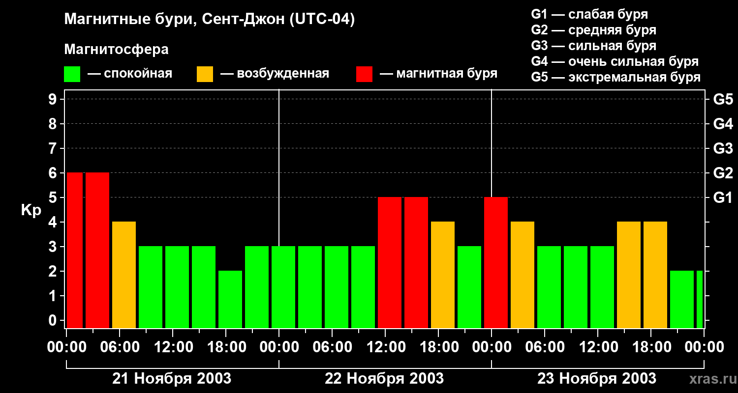 Магнитные бури в Сент-Джоне — 23 ноября 2003 года
