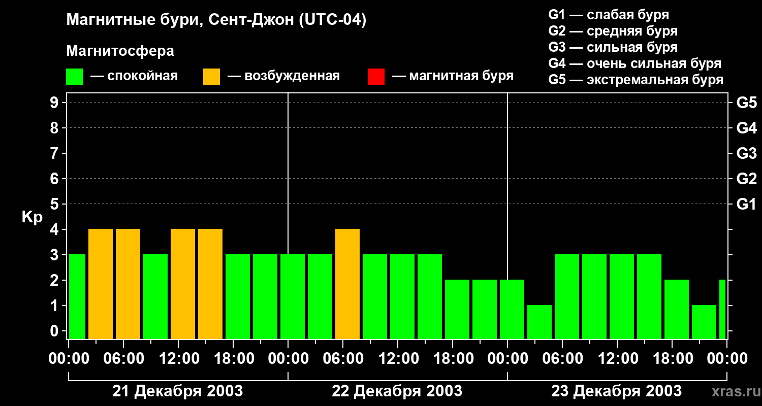 Магнитные бури в Сент-Джоне — 23 декабря 2003 года