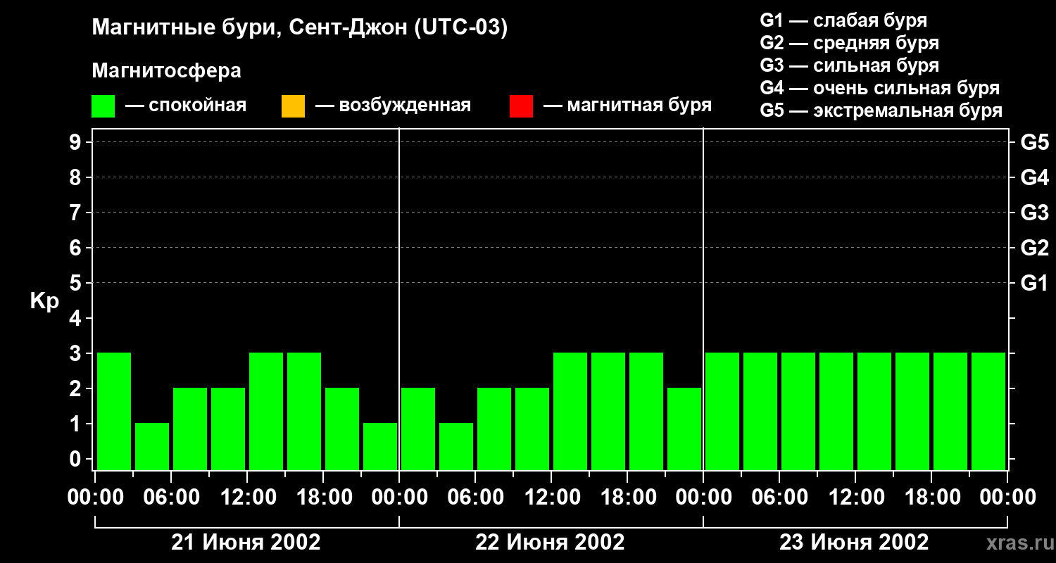 Магнитные бури в Сент-Джоне 23 июня 2002 года