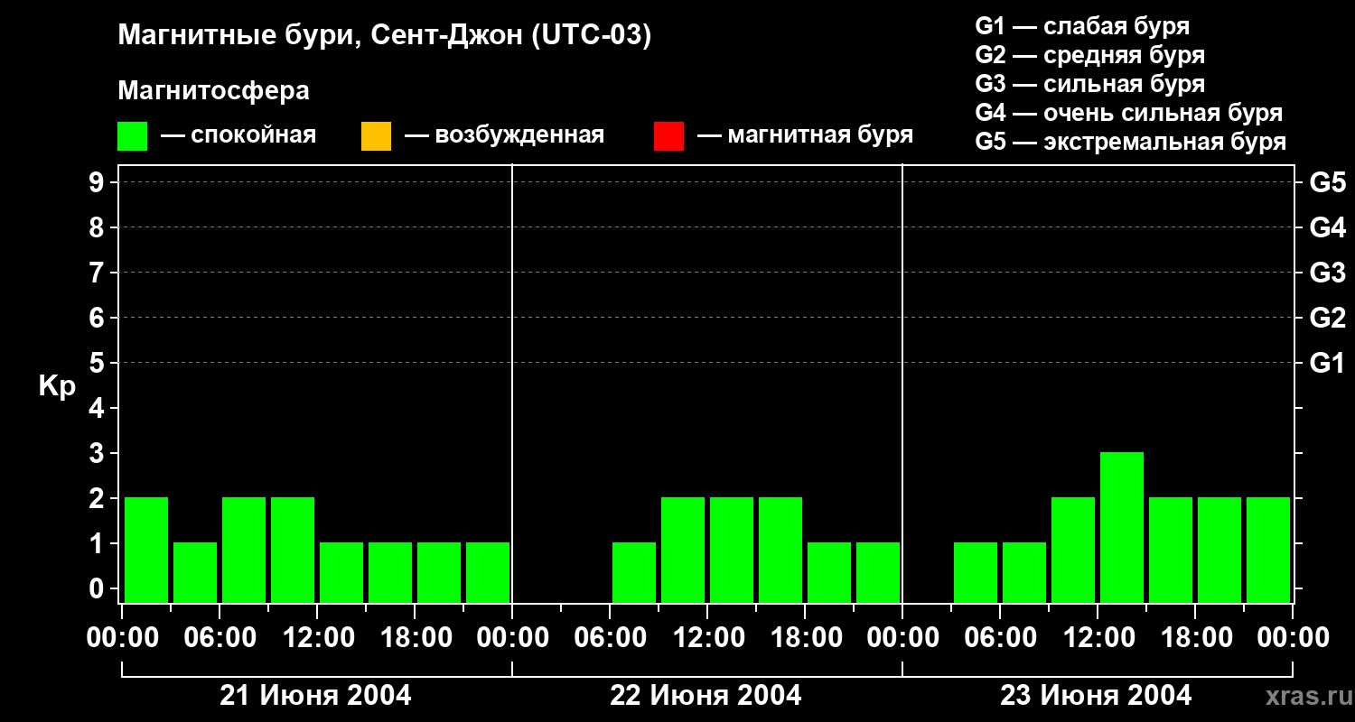 Магнитные бури в Сент-Джоне 23 июня 2004 года