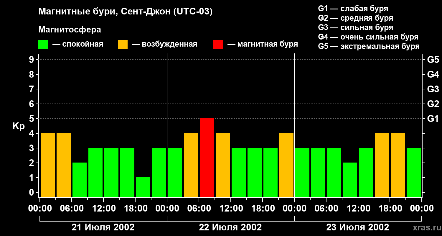 Магнитные бури в Сент-Джоне 23 июля 2002 года
