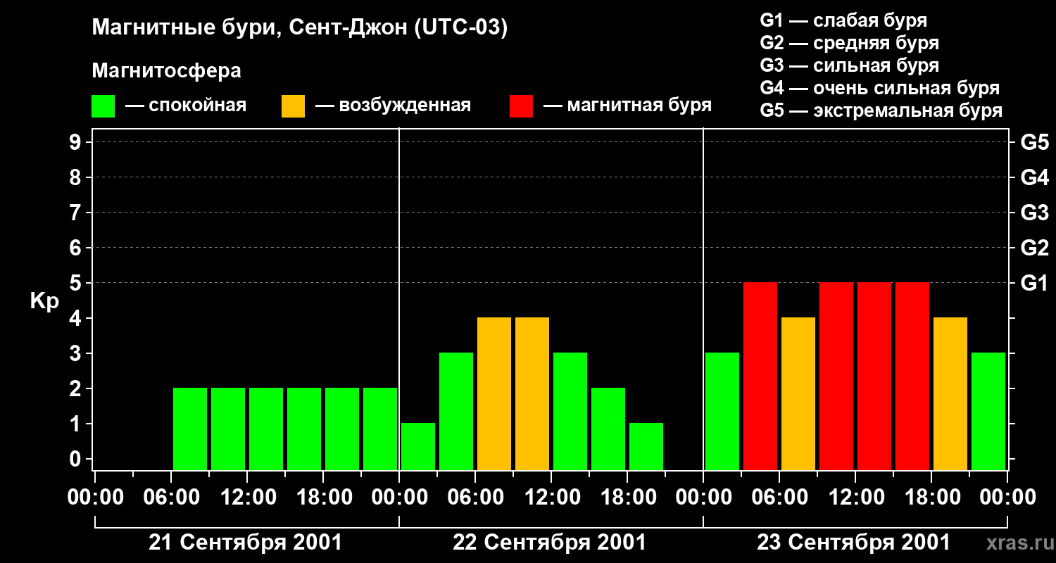 Магнитные бури в Сент-Джоне — 23 сентября 2001 года