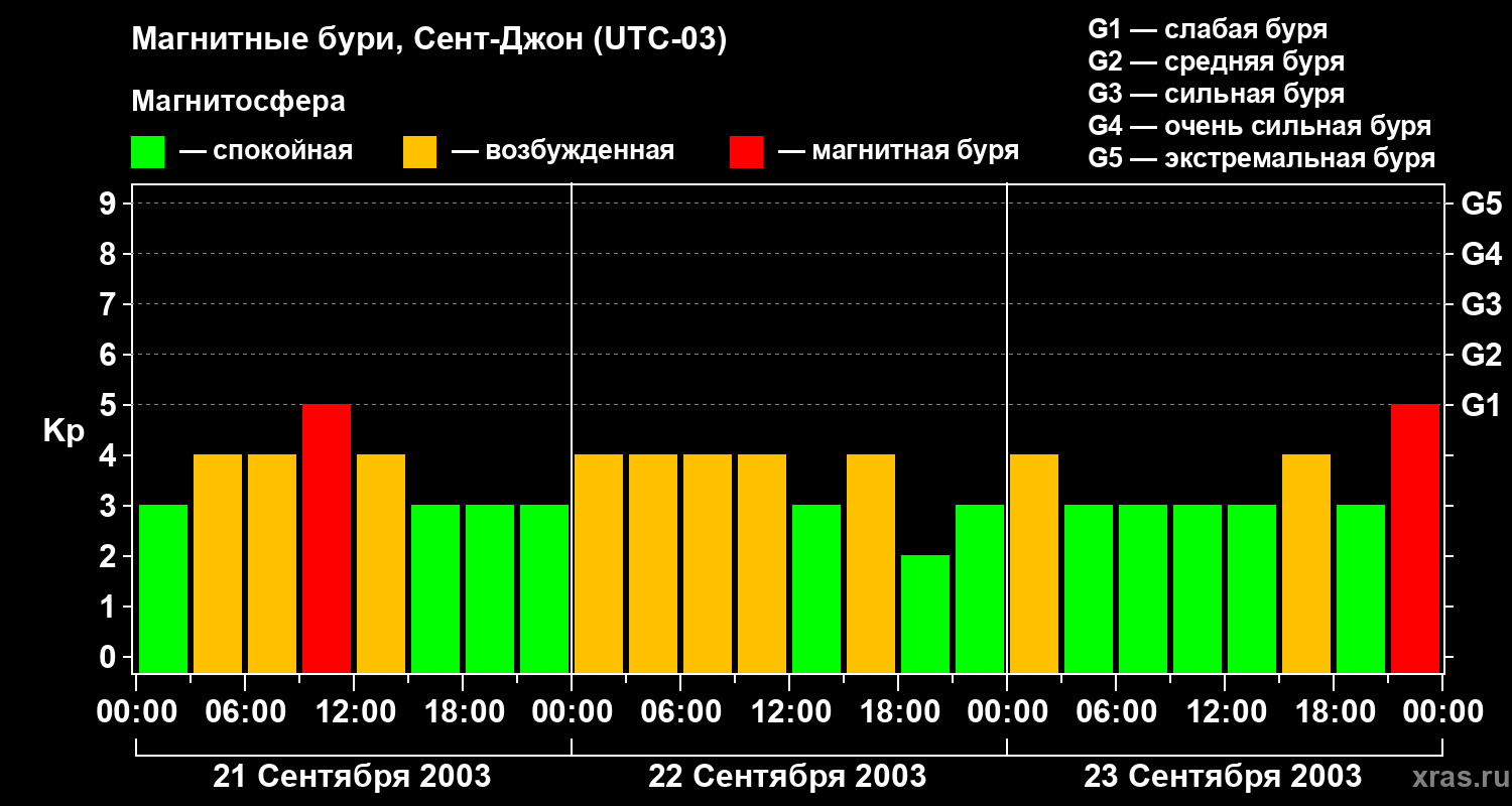 Магнитные бури в Сент-Джоне — 23 сентября 2003 года
