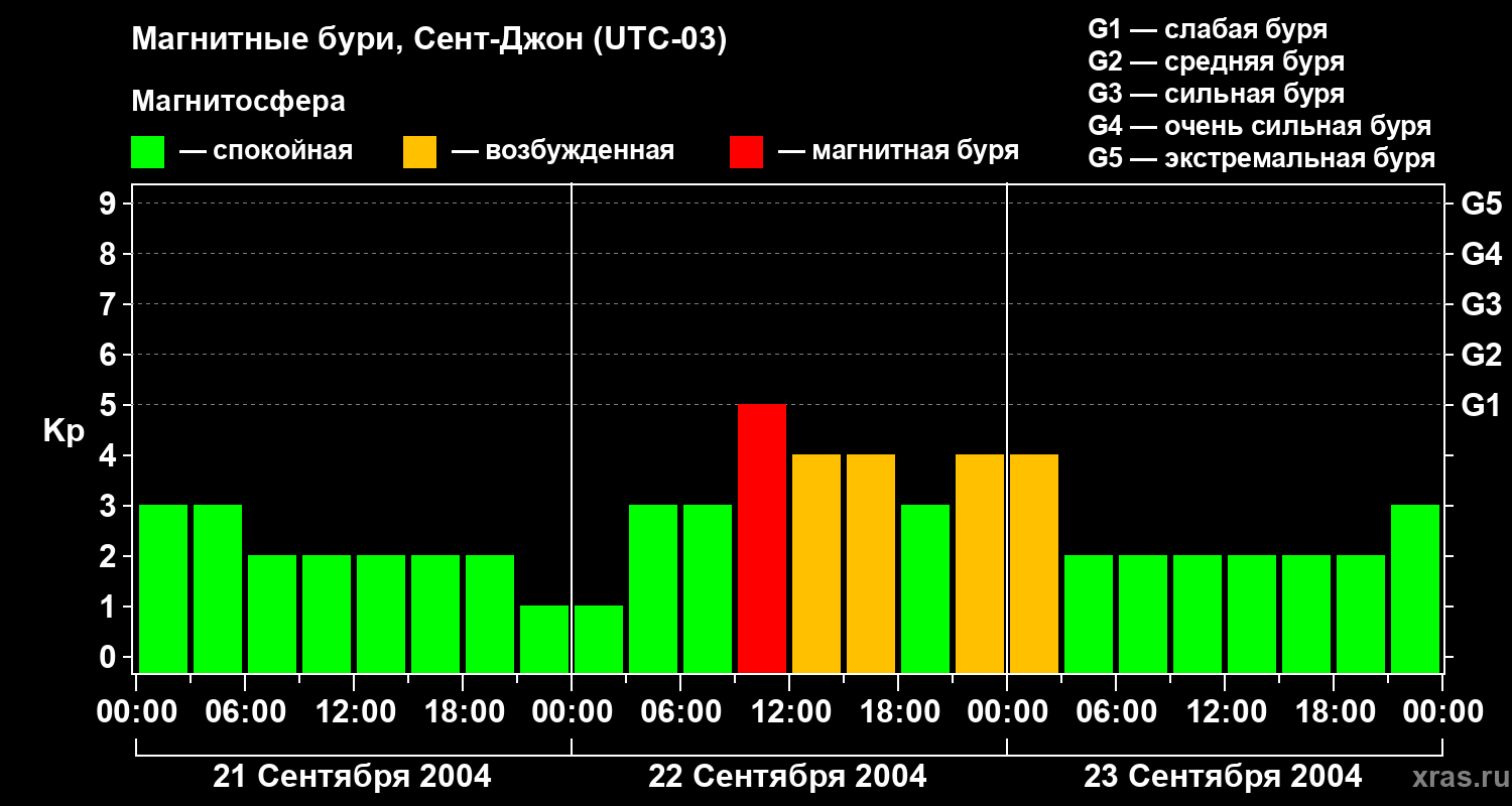 Магнитные бури в Сент-Джоне 23 сентября 2004 года