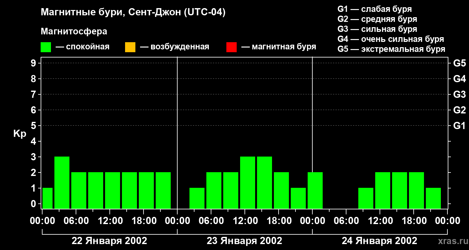 Магнитные бури в Сент-Джоне — 24 января 2002 года