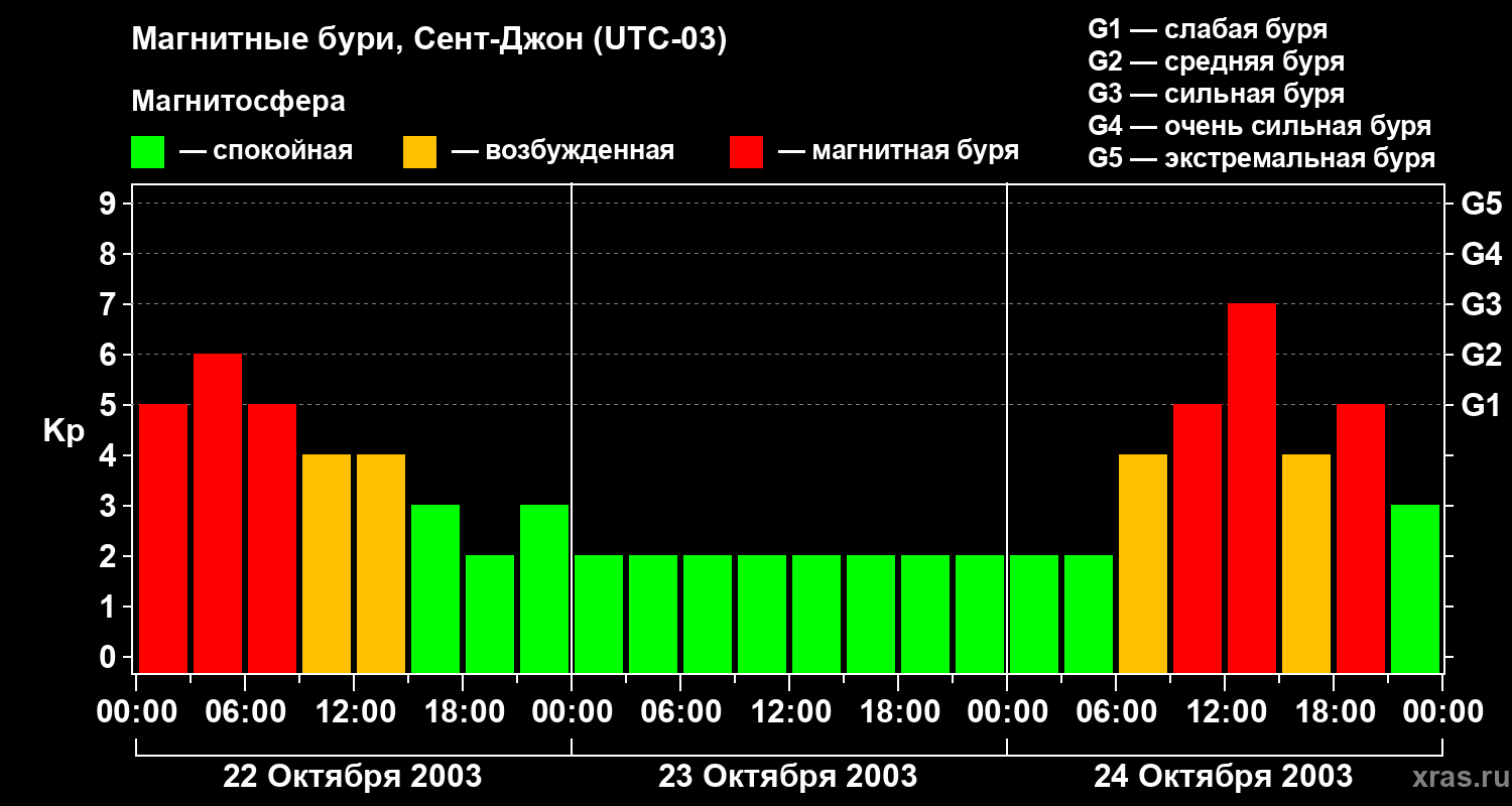 Магнитные бури в Сент-Джоне — 24 октября 2003 года