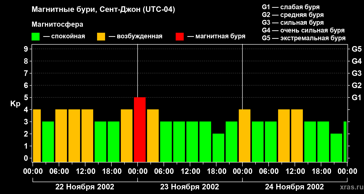 Магнитные бури в Сент-Джоне — 24 ноября 2002 года