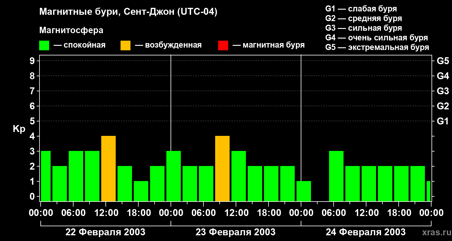 Магнитные бури в Сент-Джоне — 24 февраля 2003 года