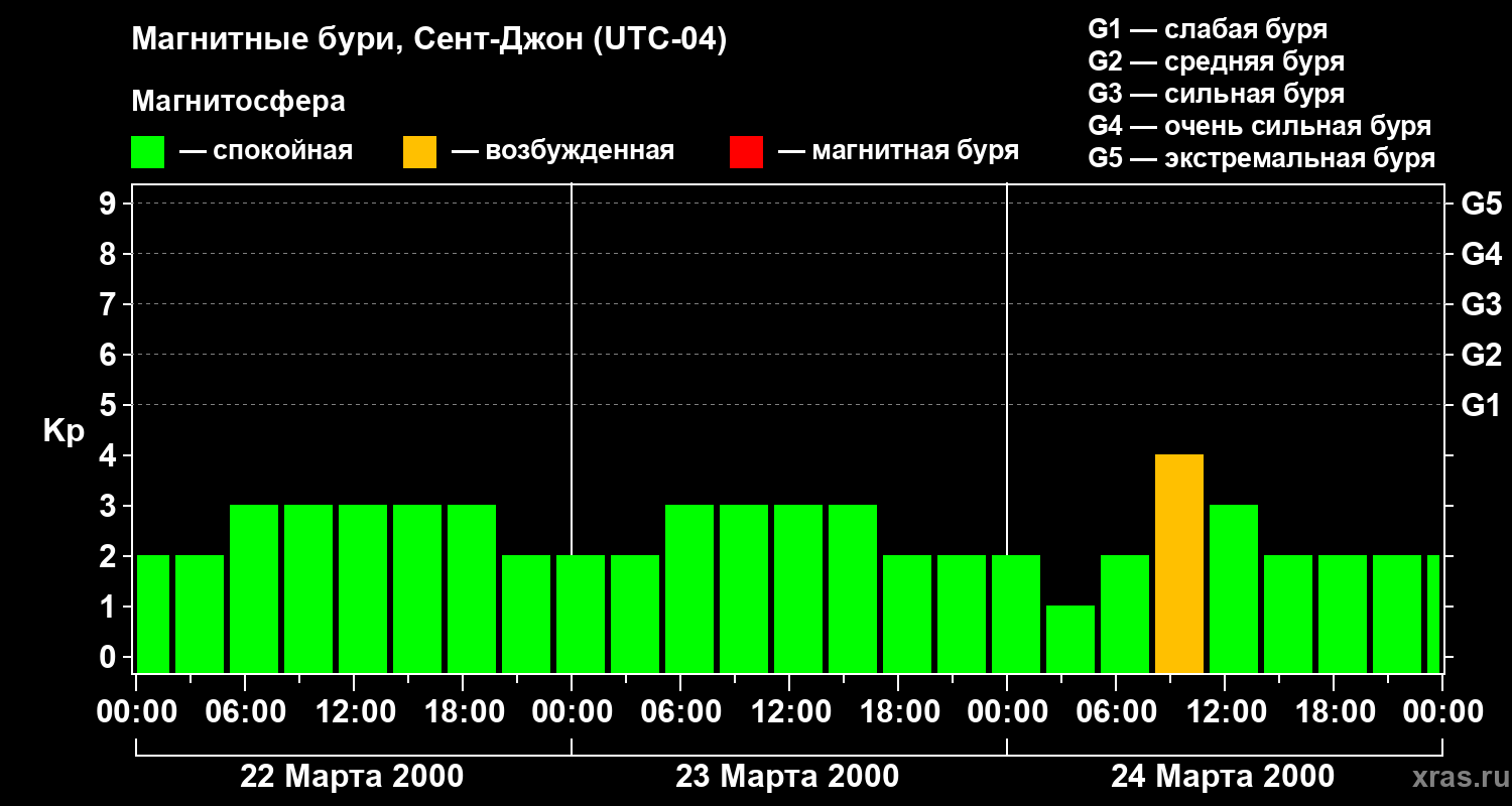 Магнитные бури в Сент-Джоне — 24 марта 2000 года