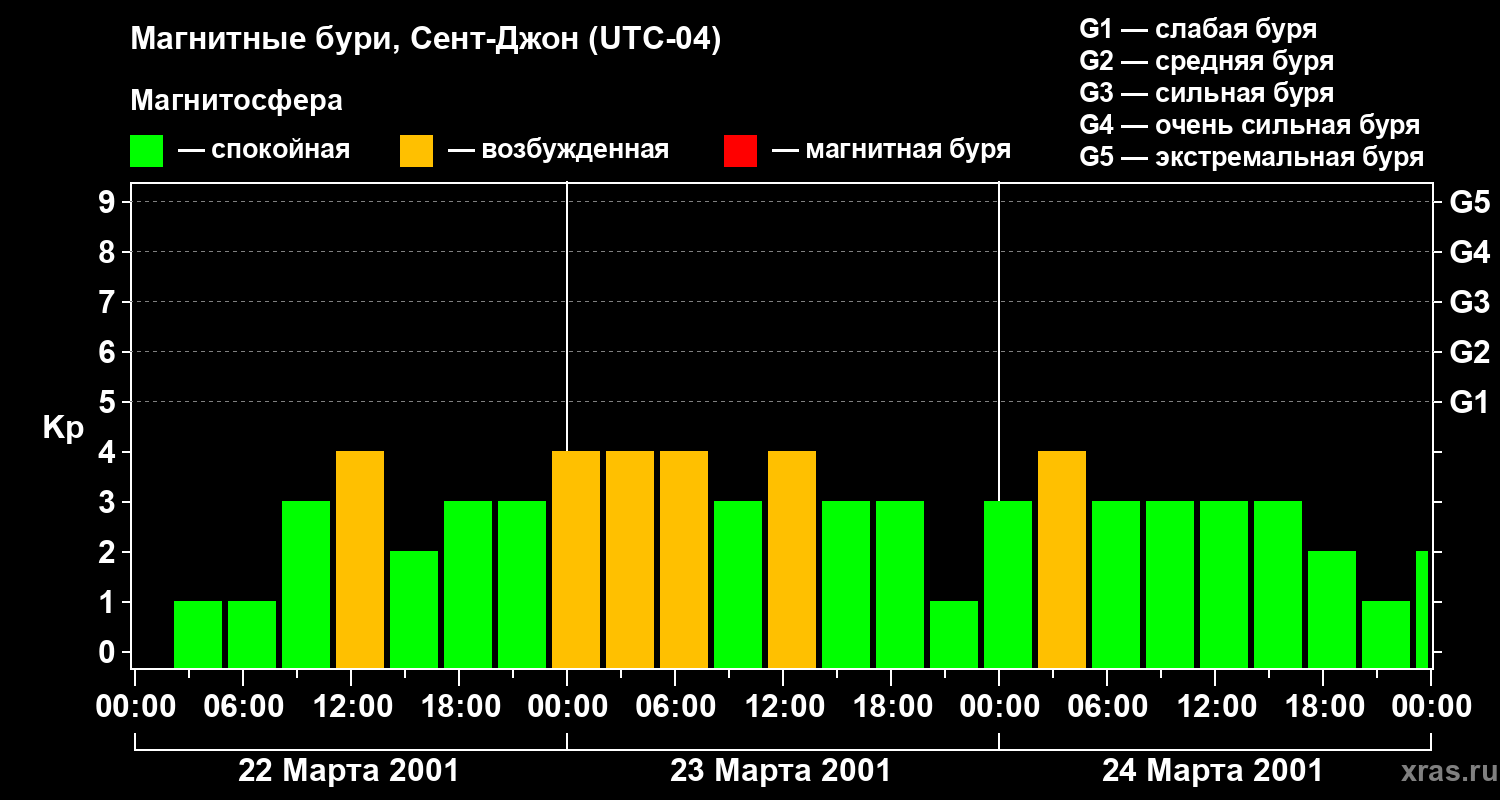 Магнитные бури в Сент-Джоне 24 марта 2001 года