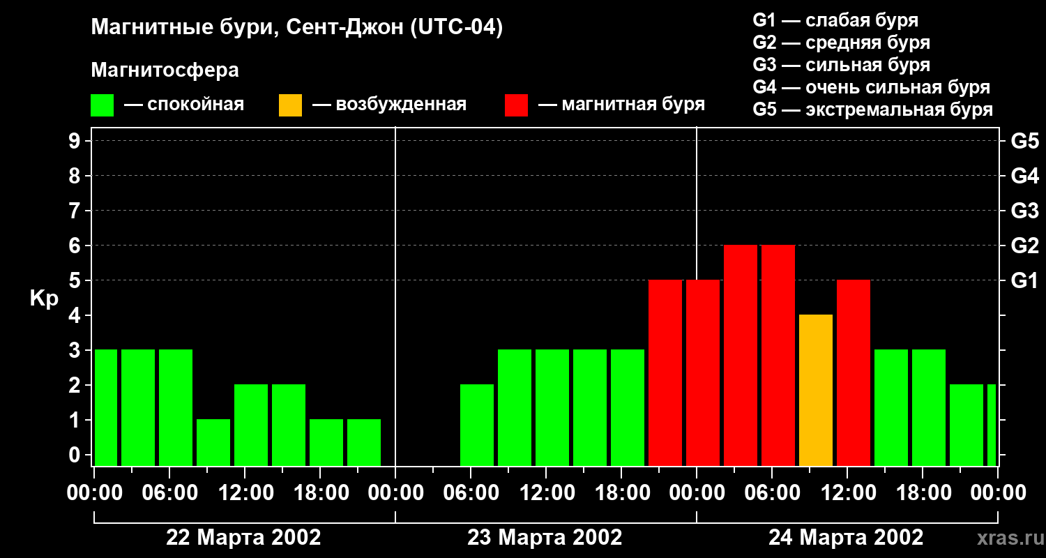 Магнитные бури в Сент-Джоне 24 марта 2002 года