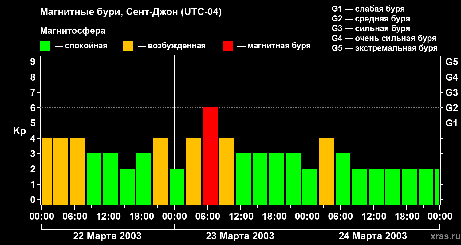 Магнитные бури в Сент-Джоне — 24 марта 2003 года