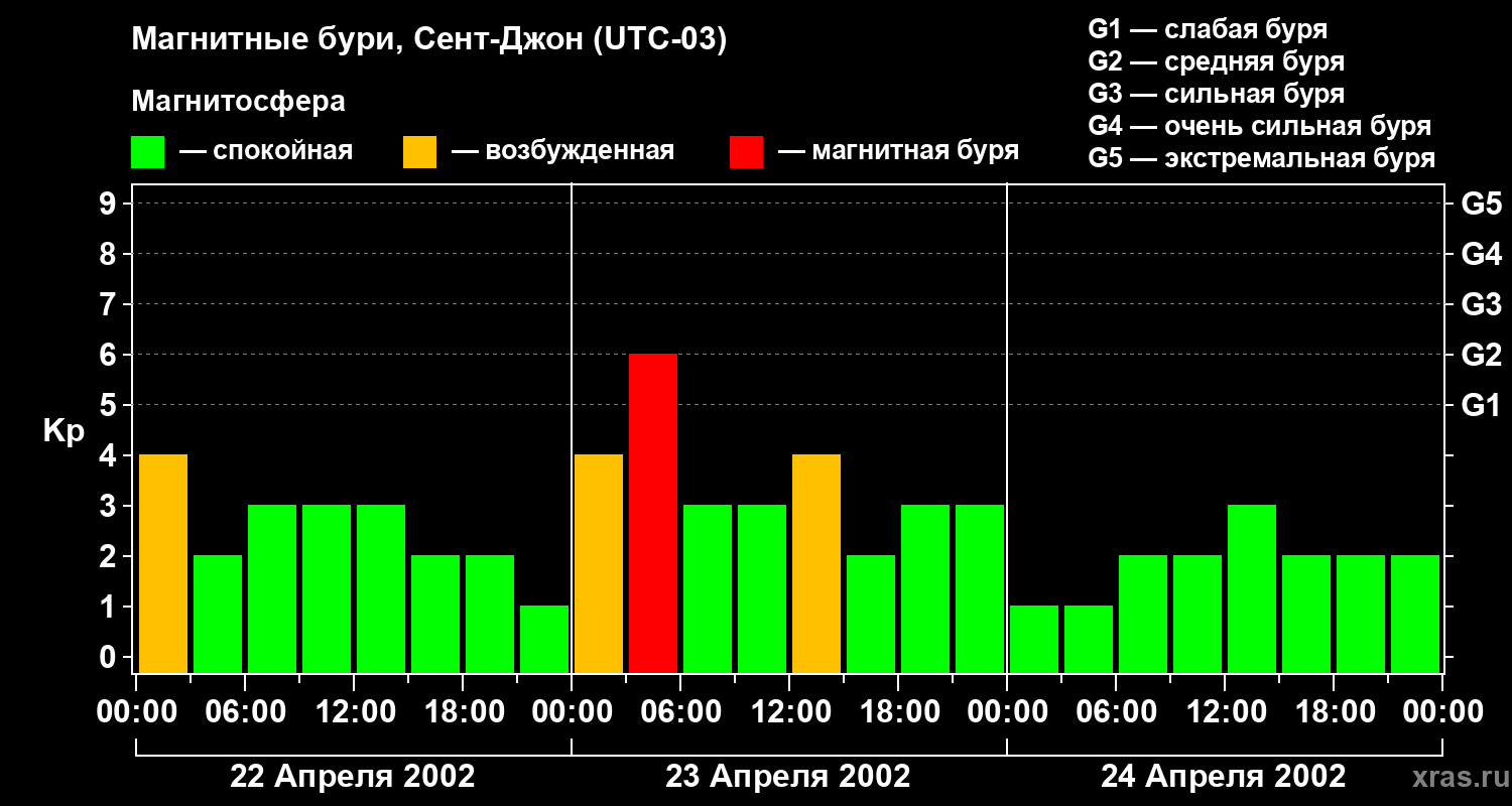 Магнитные бури в Сент-Джоне 24 апреля 2002 года