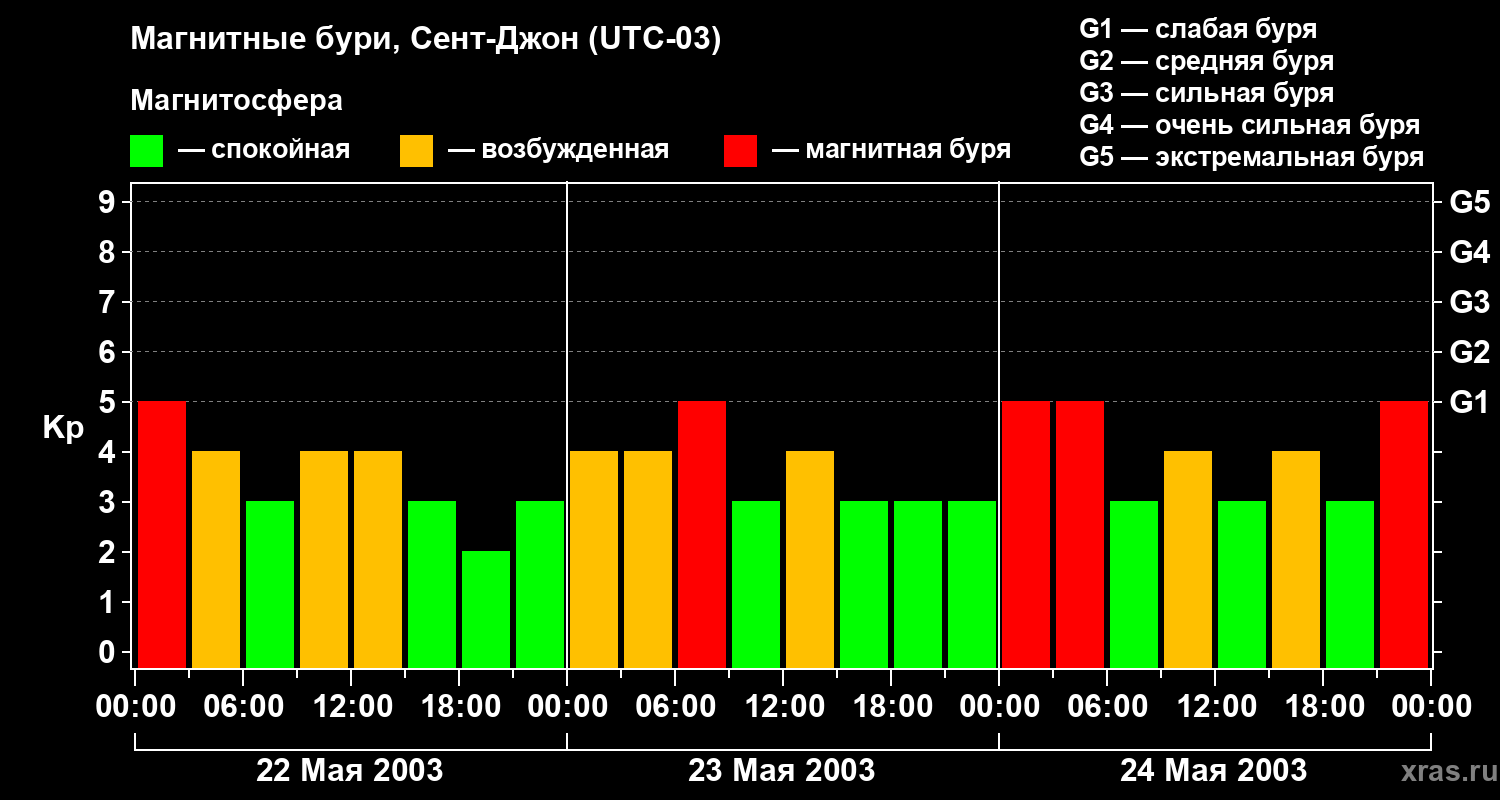 Магнитные бури в Сент-Джоне — 24 мая 2003 года