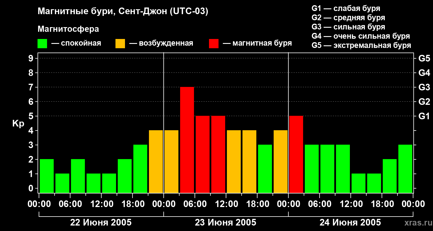 Магнитные бури в Сент-Джоне — 24 июня 2005 года