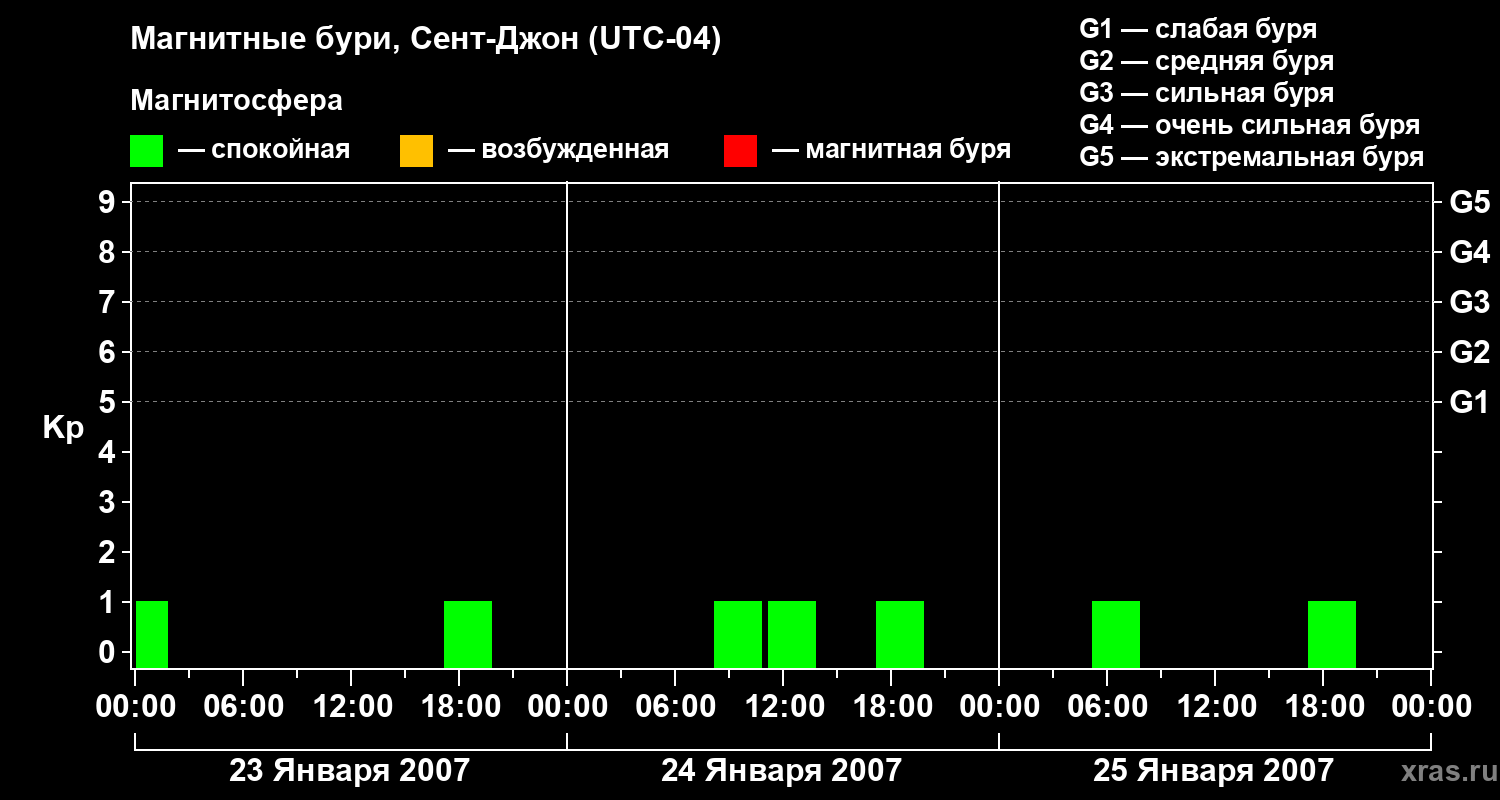 Магнитные бури в Сент-Джоне 25 января 2007 года
