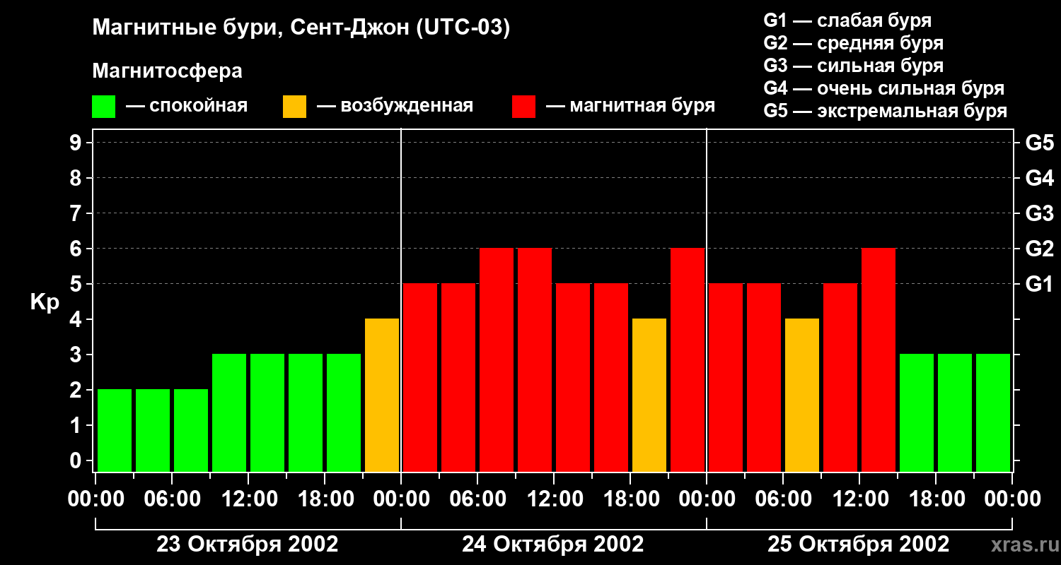 Магнитные бури в Сент-Джоне — 25 октября 2002 года