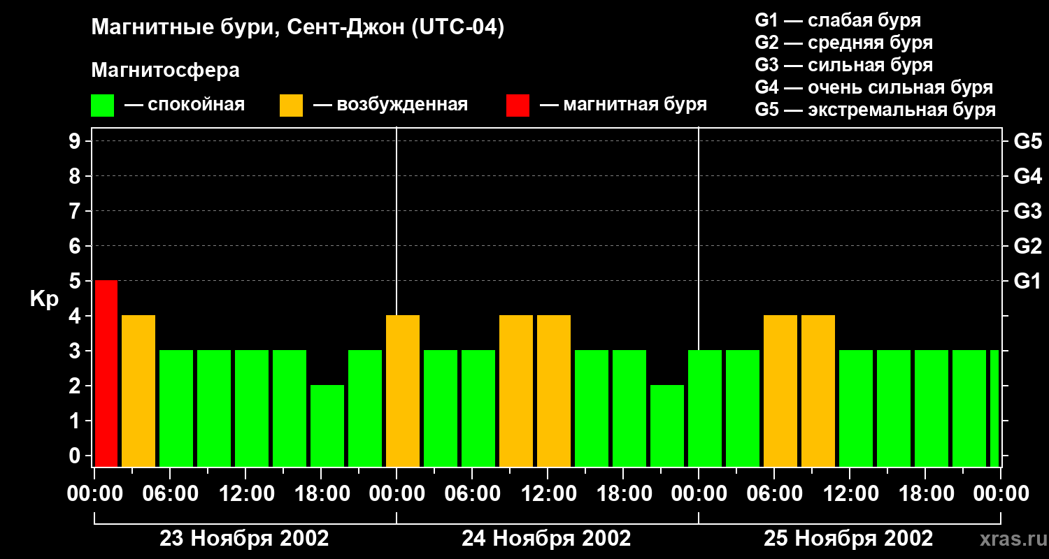 Магнитные бури в Сент-Джоне — 25 ноября 2002 года