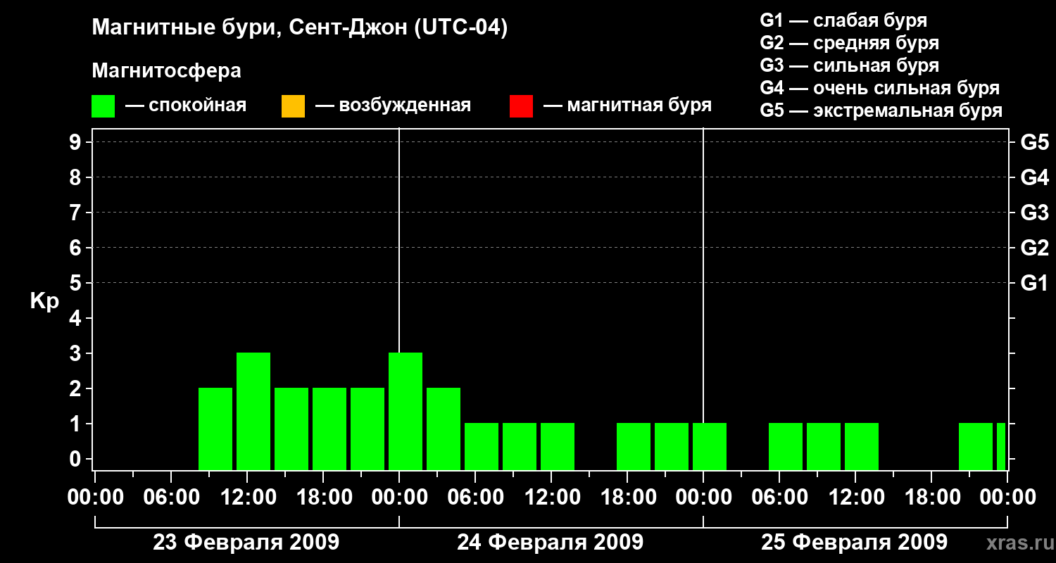 Магнитные бури в Сент-Джоне — 25 февраля 2009 года