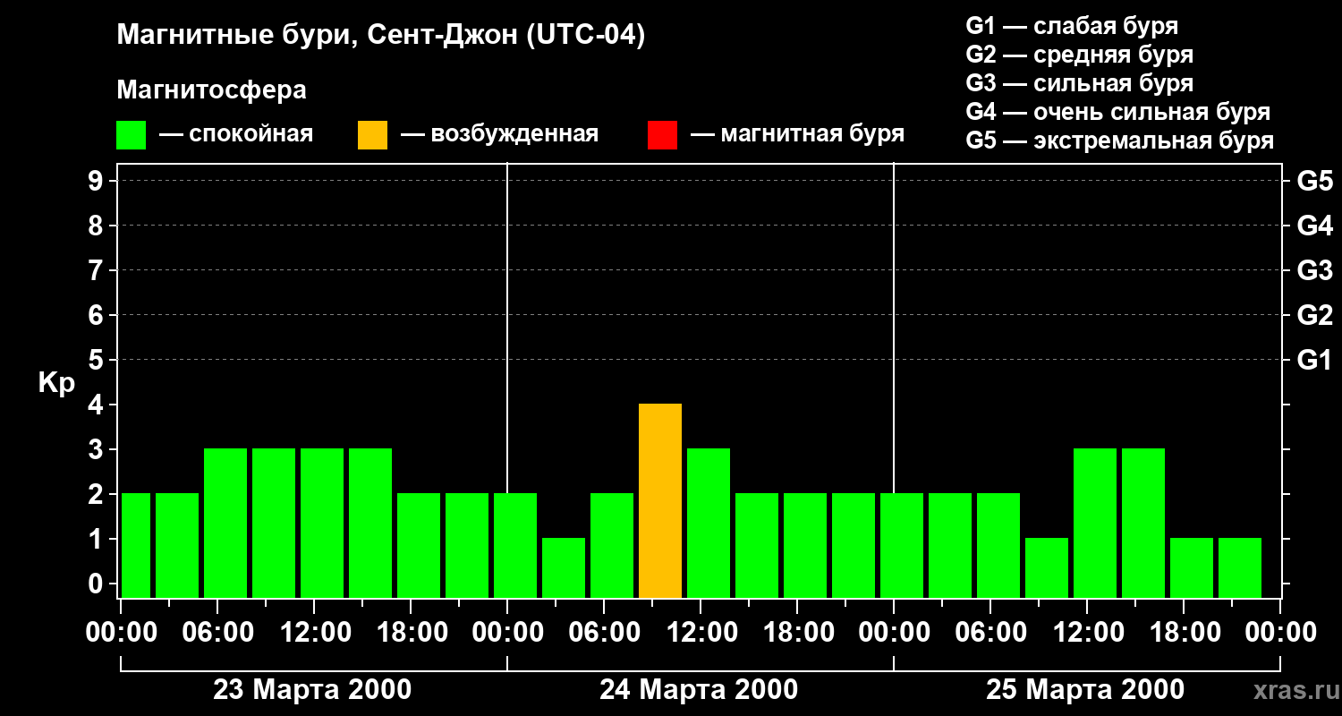 Магнитные бури в Сент-Джоне 25 марта 2000 года