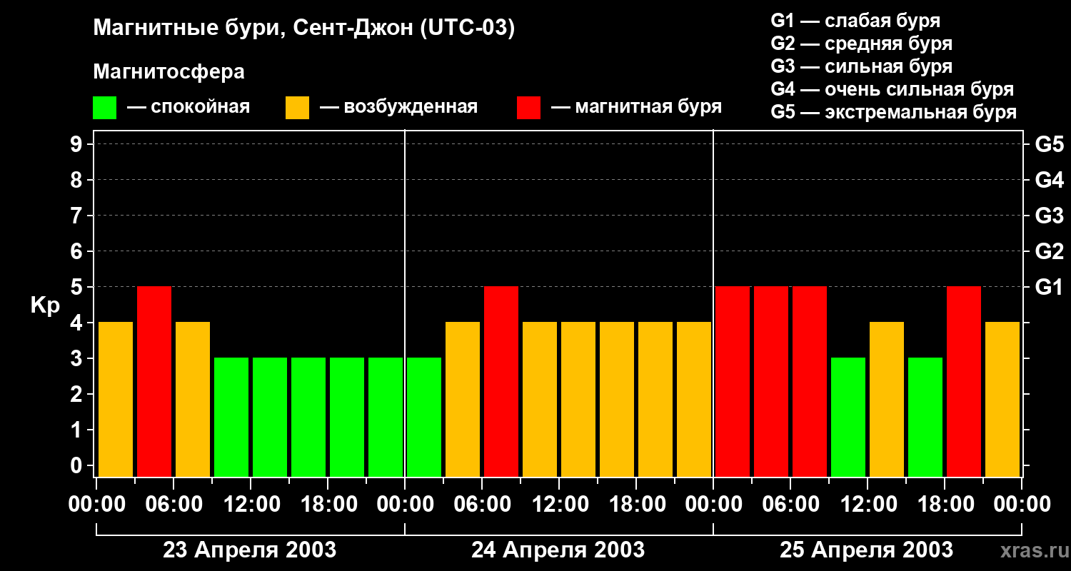 Магнитные бури в Сент-Джоне — 25 апреля 2003 года