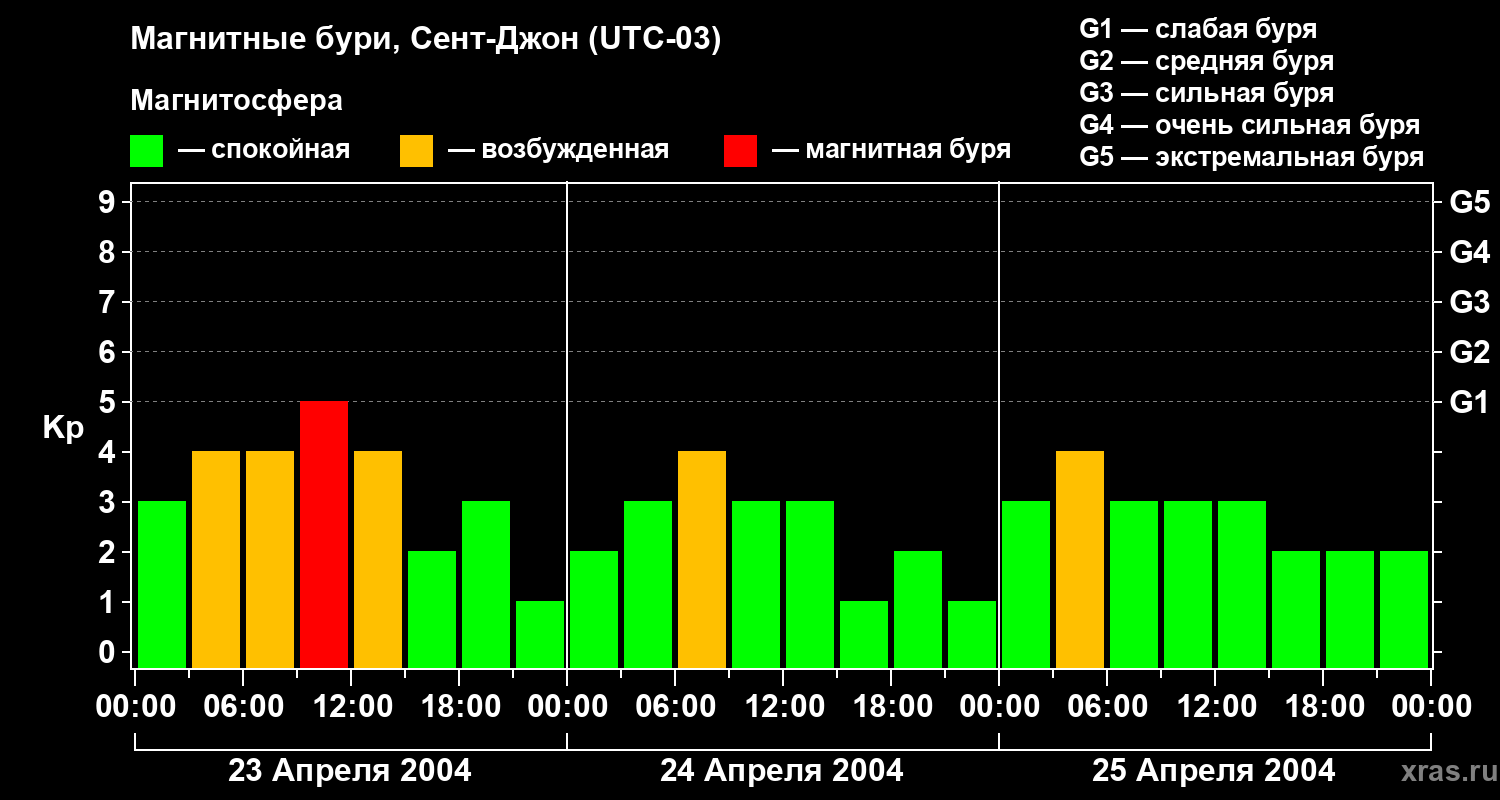 Магнитные бури в Сент-Джоне — 25 апреля 2004 года