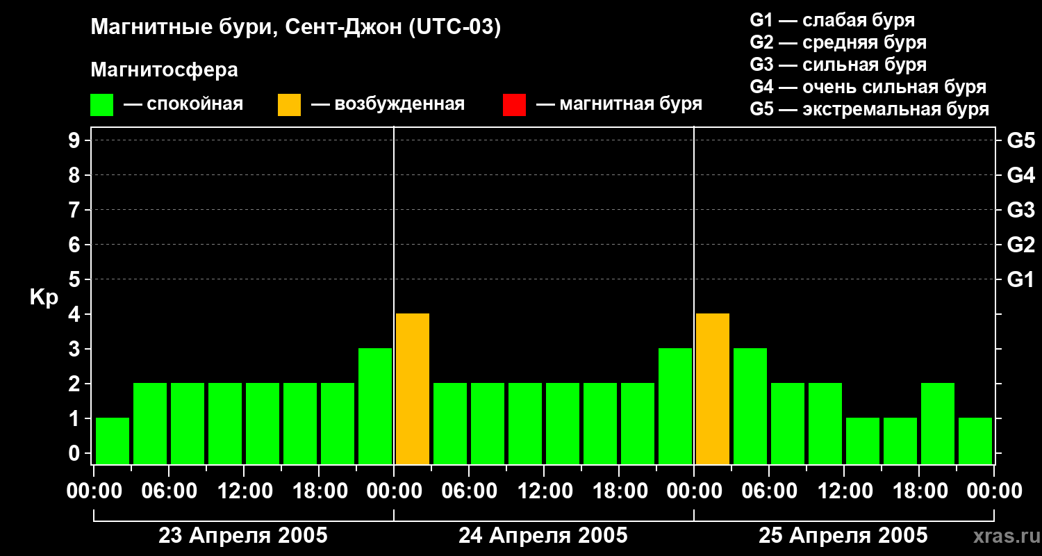 Магнитные бури в Сент-Джоне — 25 апреля 2005 года