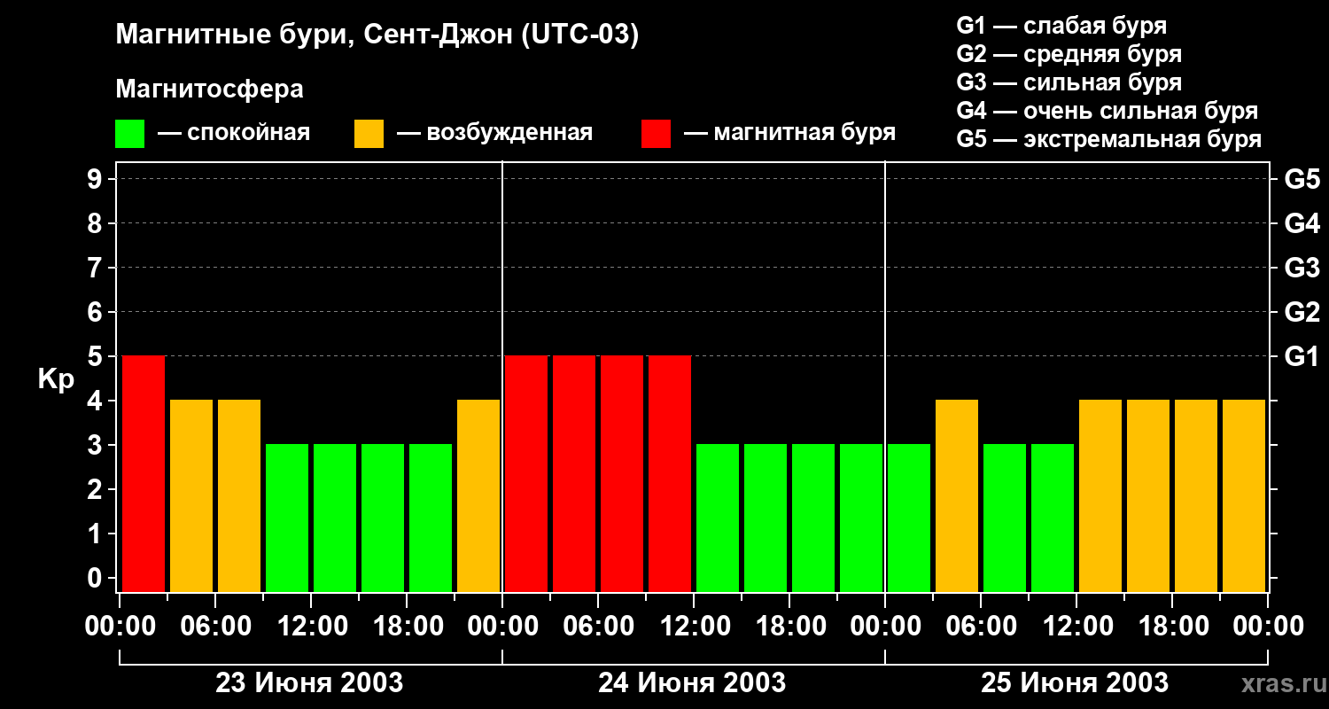 Магнитные бури в Сент-Джоне — 25 июня 2003 года