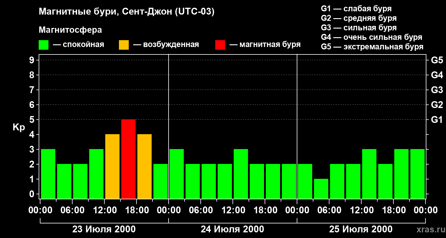 Магнитные бури в Сент-Джоне 25 июля 2000 года