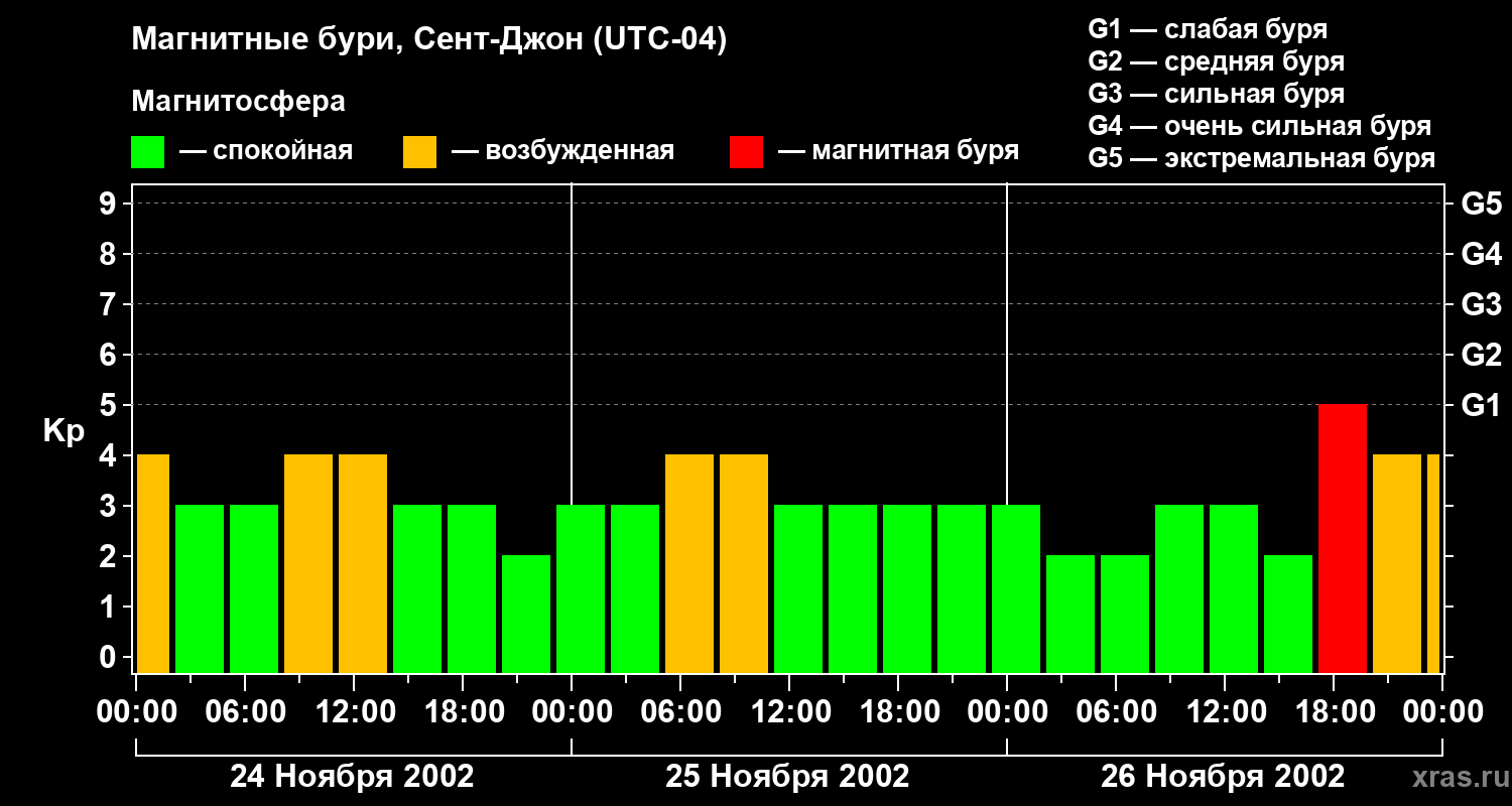 Магнитные бури в Сент-Джоне 26 ноября 2002 года