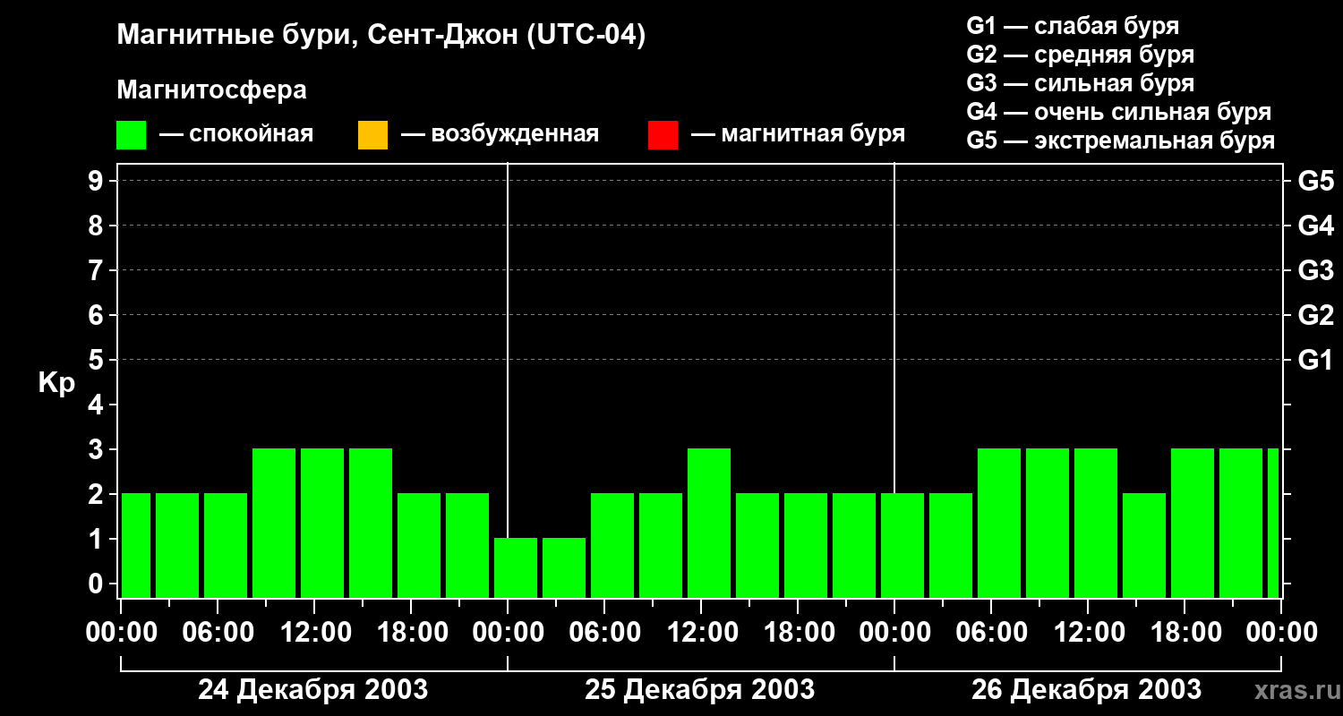 Магнитные бури в Сент-Джоне — 26 декабря 2003 года