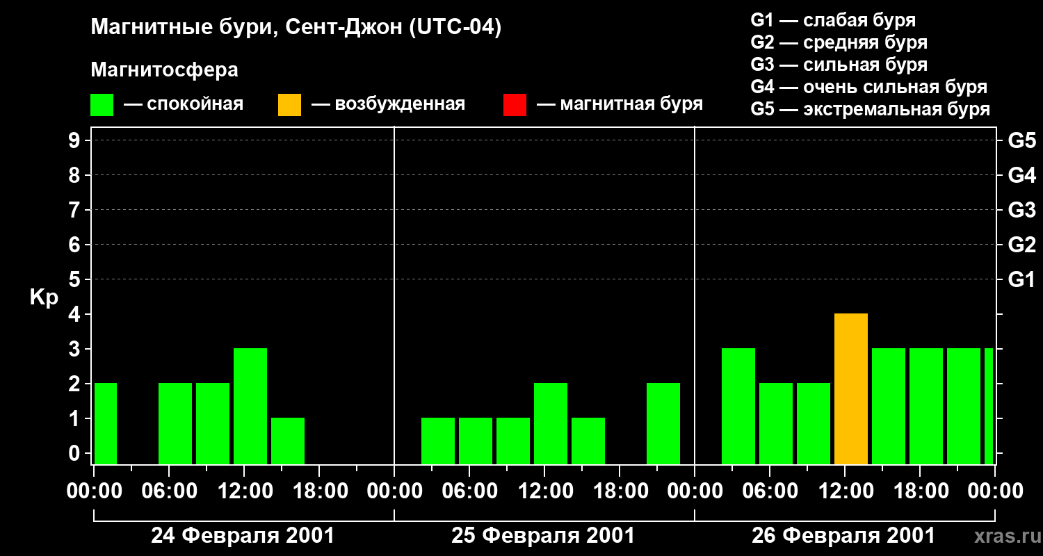 Магнитные бури в Сент-Джоне 26 февраля 2001 года