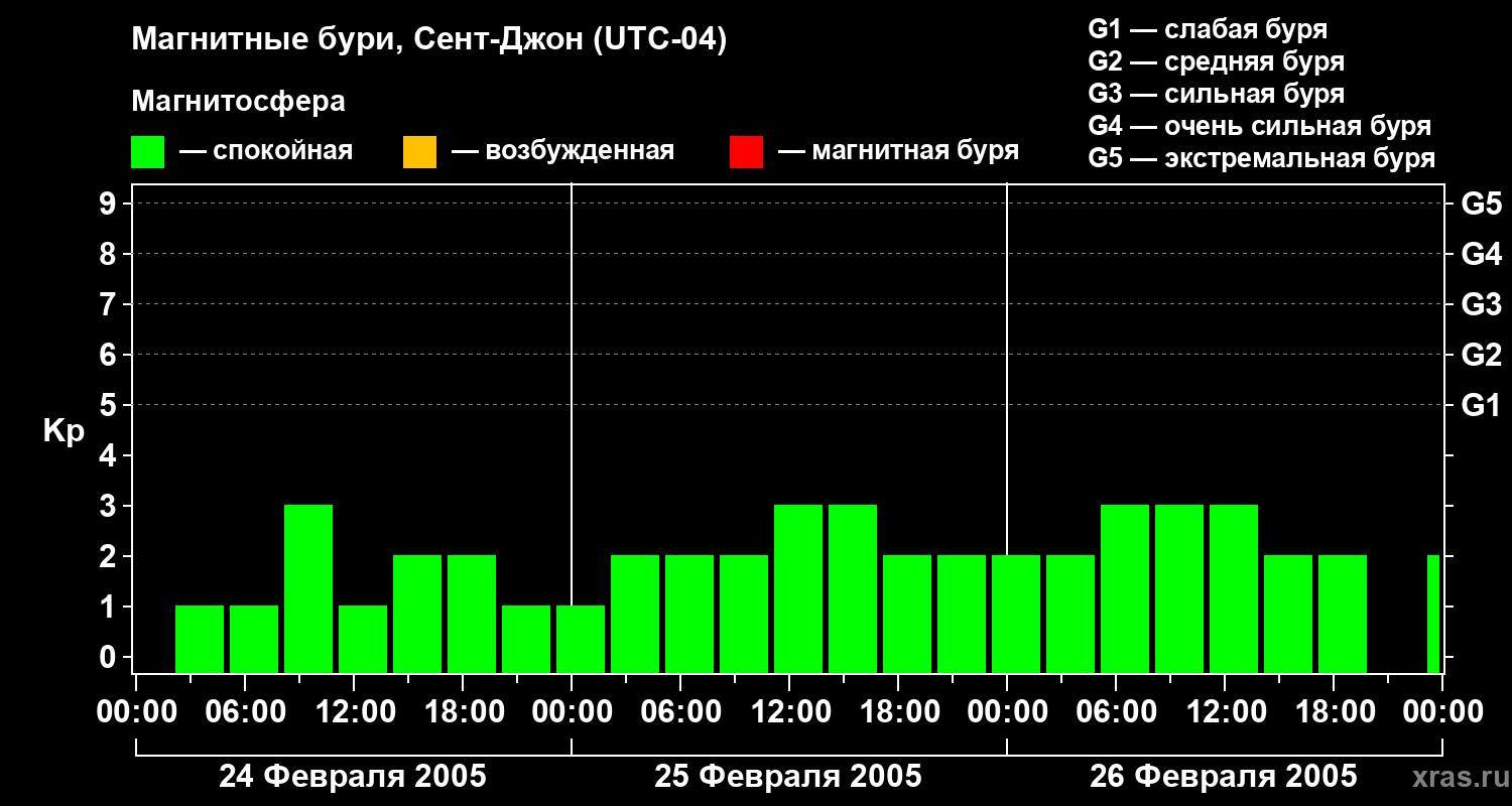 Магнитные бури в Сент-Джоне 26 февраля 2005 года